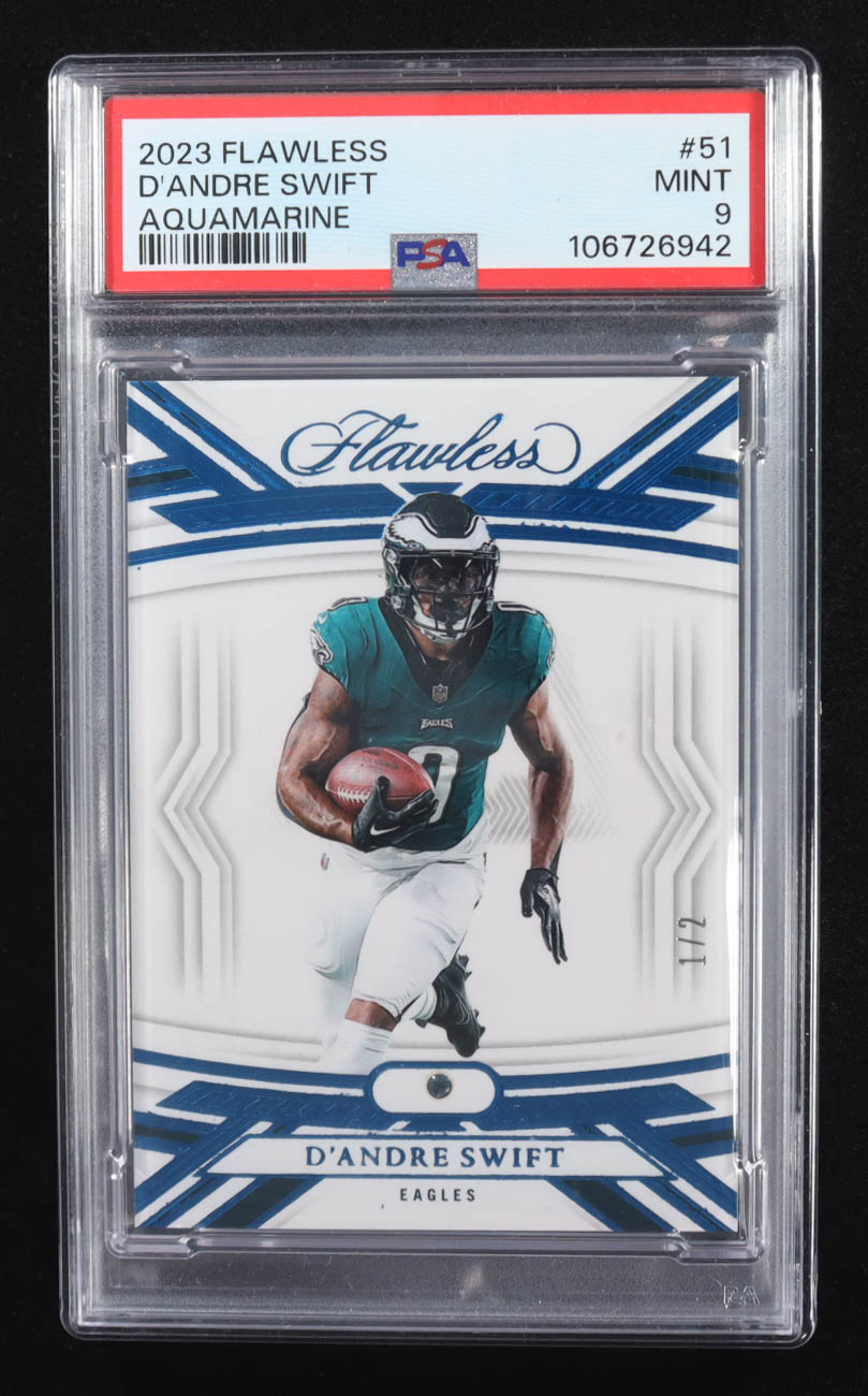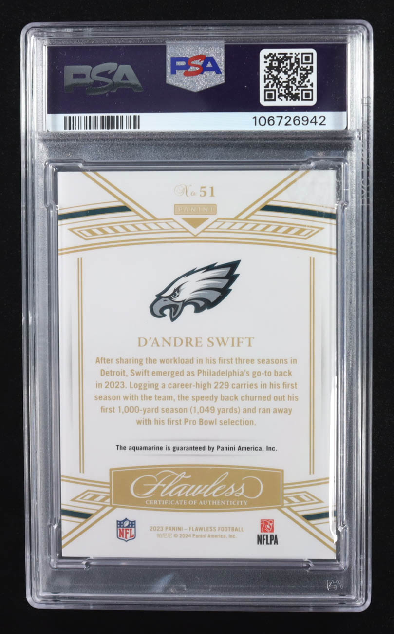D'Andre Swift 2023 Panini Flawless Aquamarine #51 #1/2 (PSA 9)