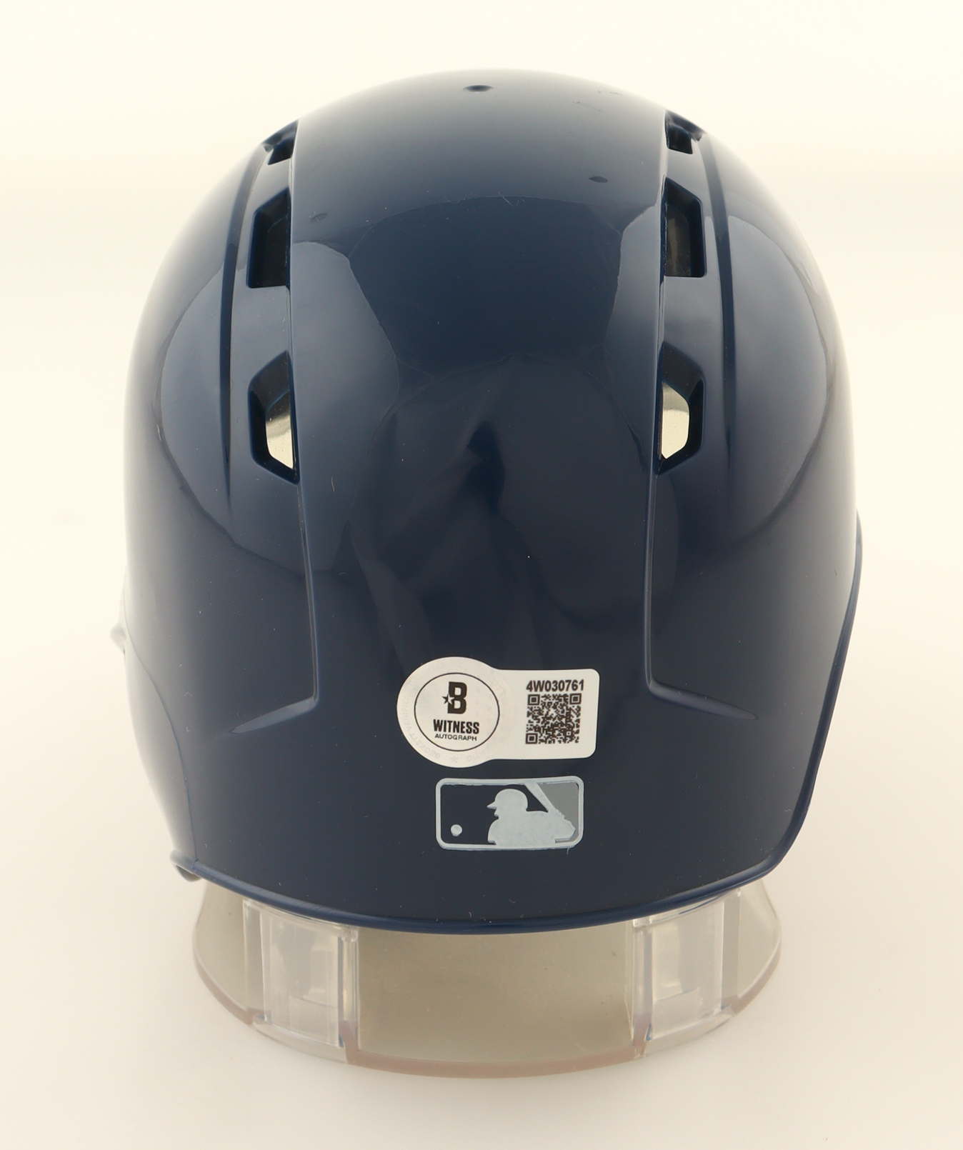 Rawlings New York Yankees mini batting helmet. Hand-signed and inscribed by Jose Canseco.
