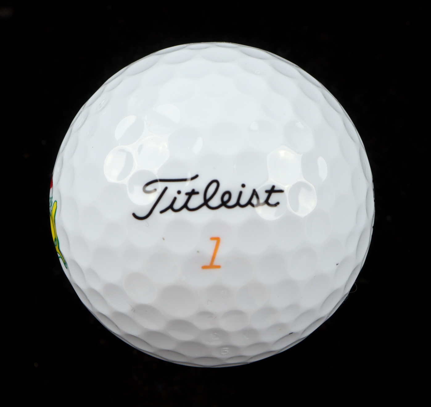 TItleist Masters logo golf ball. Hand-signed by Dustin Johnson.