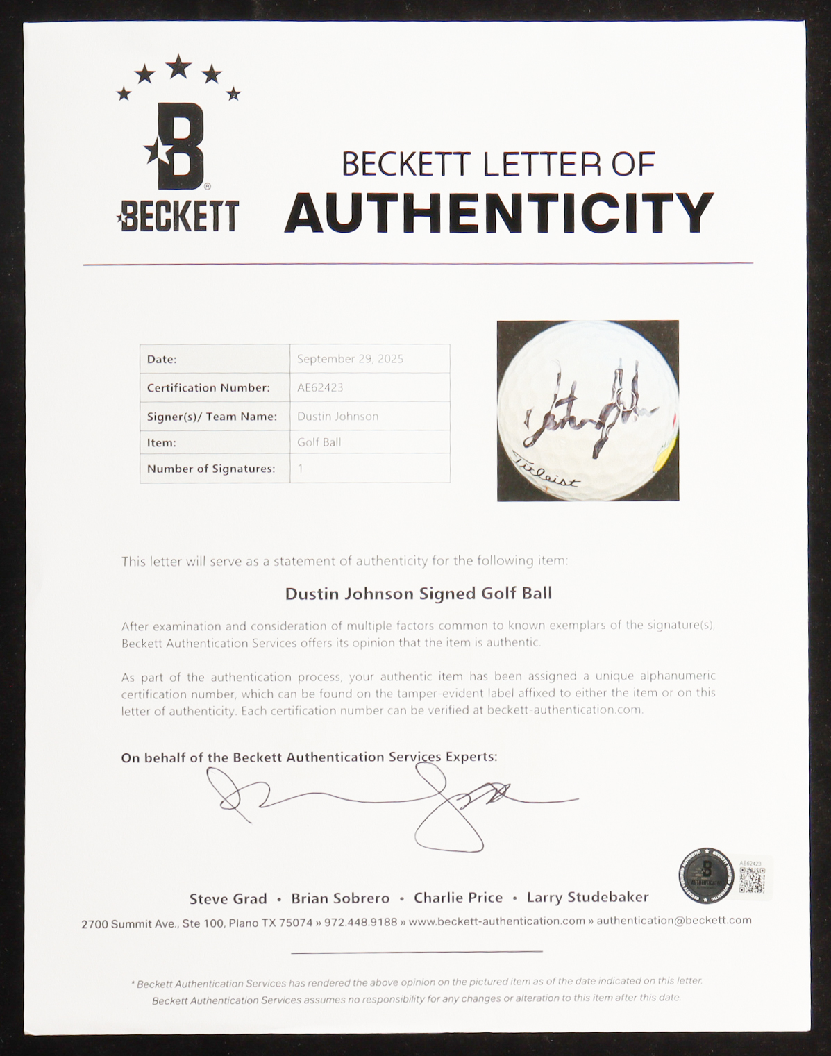 Dustin Johnson Signed Masters Logo Golf Ball (Beckett)