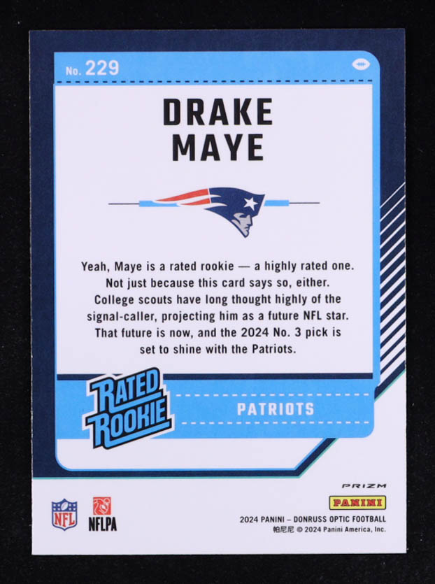 Drake Maye 2024 Donruss Optic Purple Shock #229 RR RC