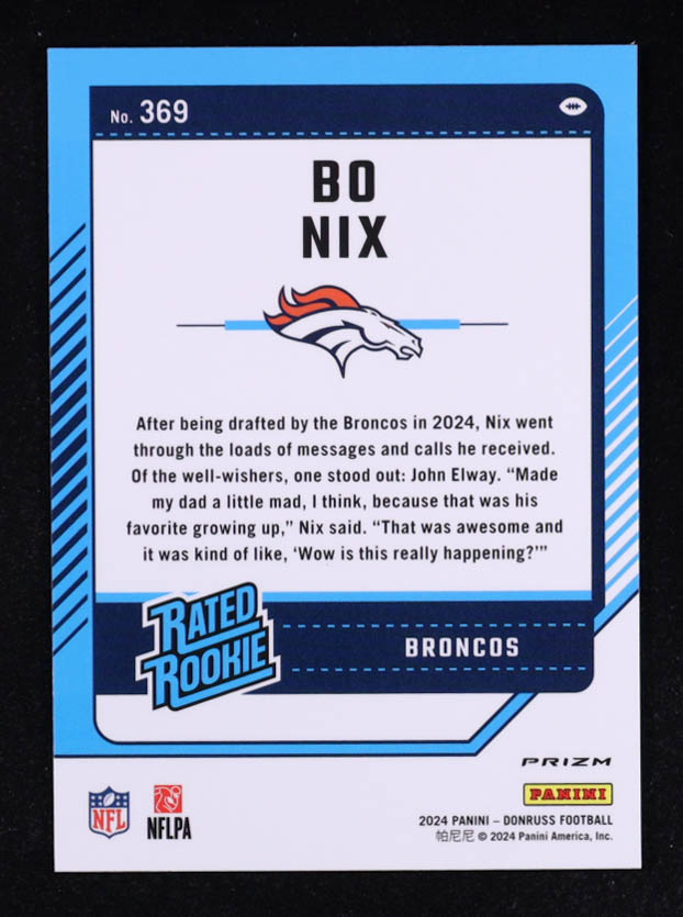 Bo Nix 2024 Donruss Optic Rated Rookies Preview Pink #369 RC