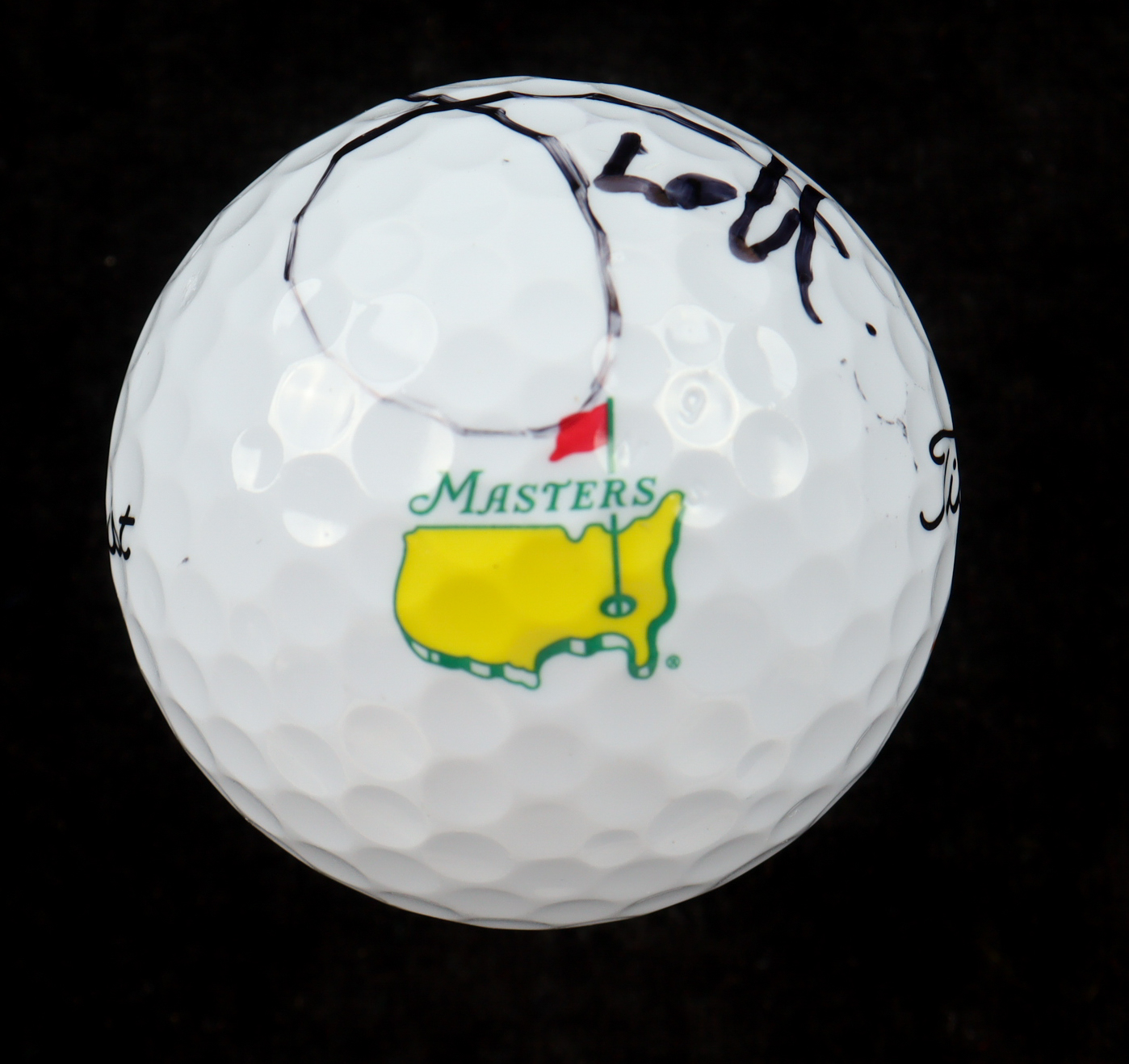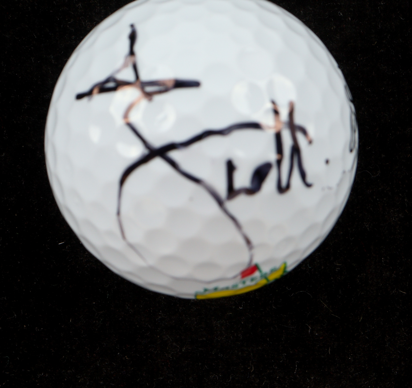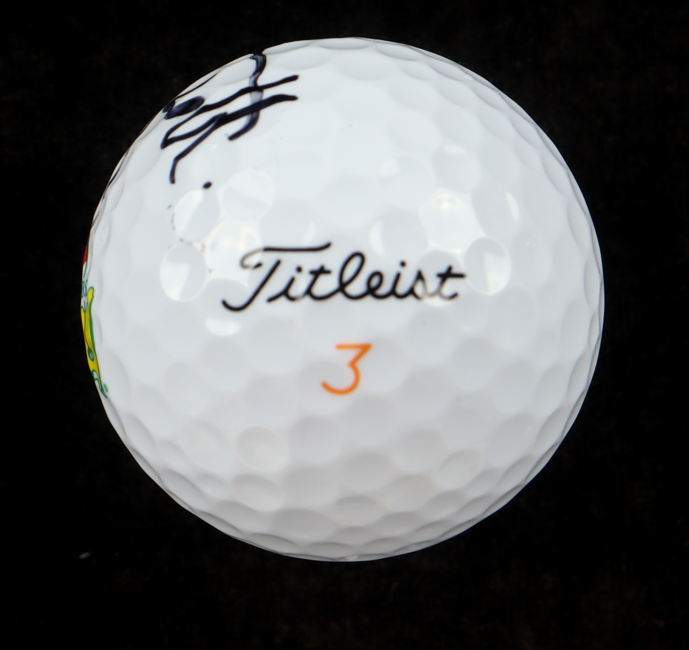 Titleist 3 Masters Tournament Logo Golf Ball. Hand-signed by Adam Scott.