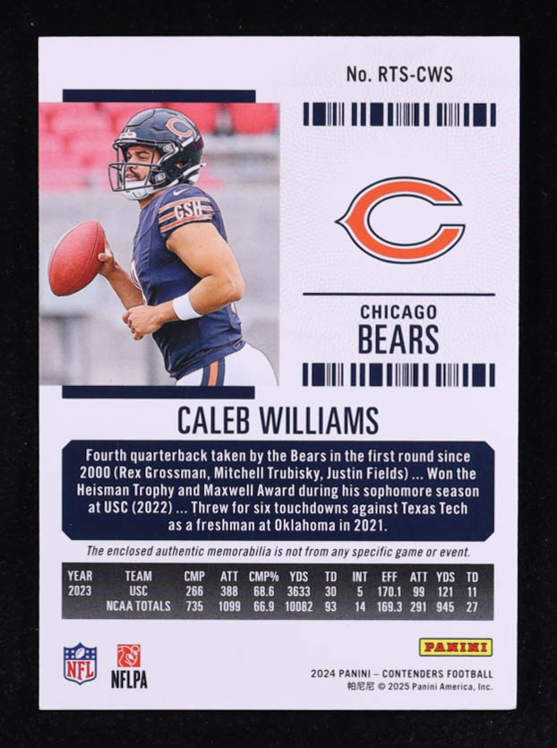 Caleb Williams 2024 Panini Contenders Rookie Ticket Swatches #1 RC