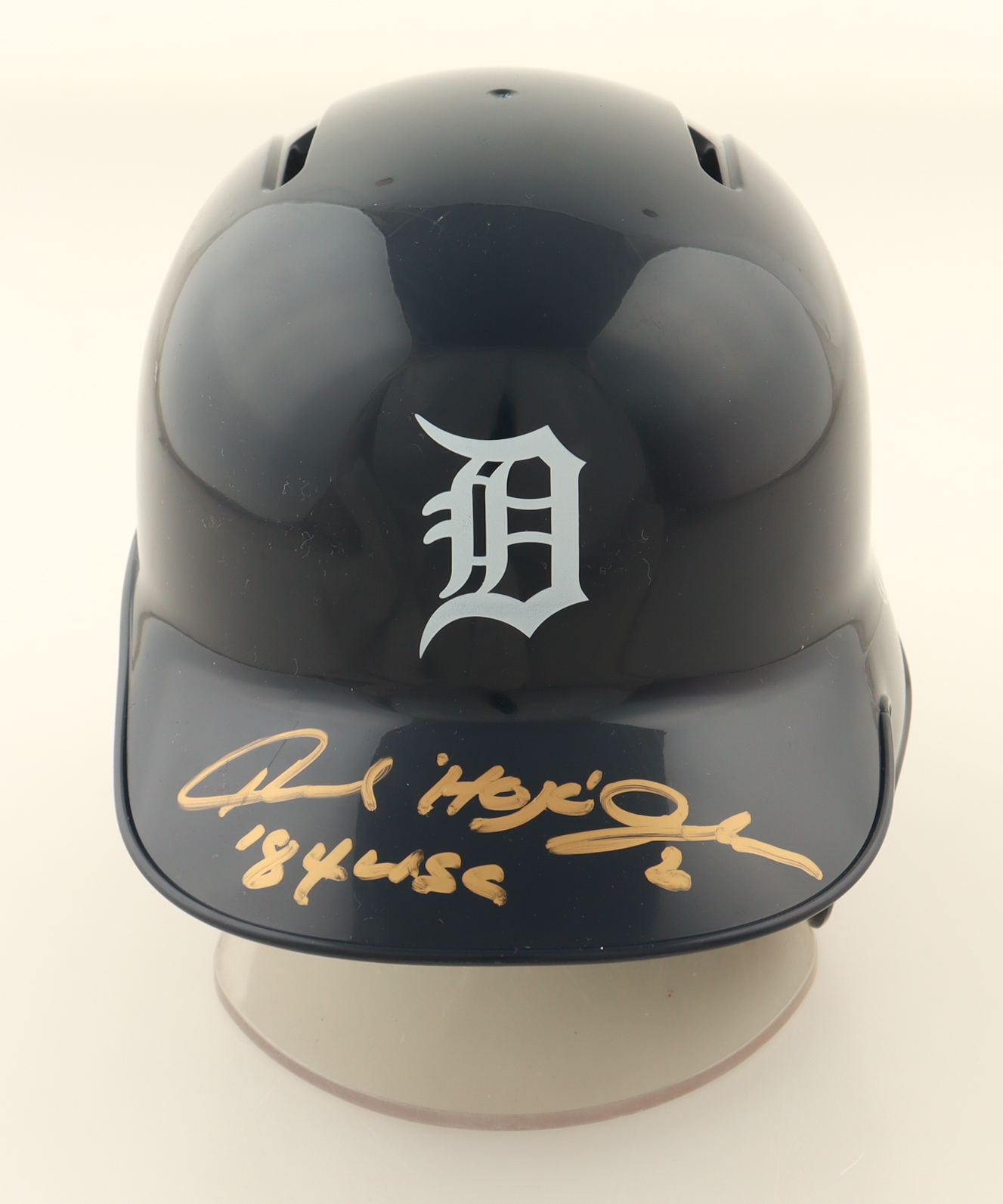 Rawlings Detroit Tigers mini batting helmet. Hand-signed and inscribed by Howard Johnson.