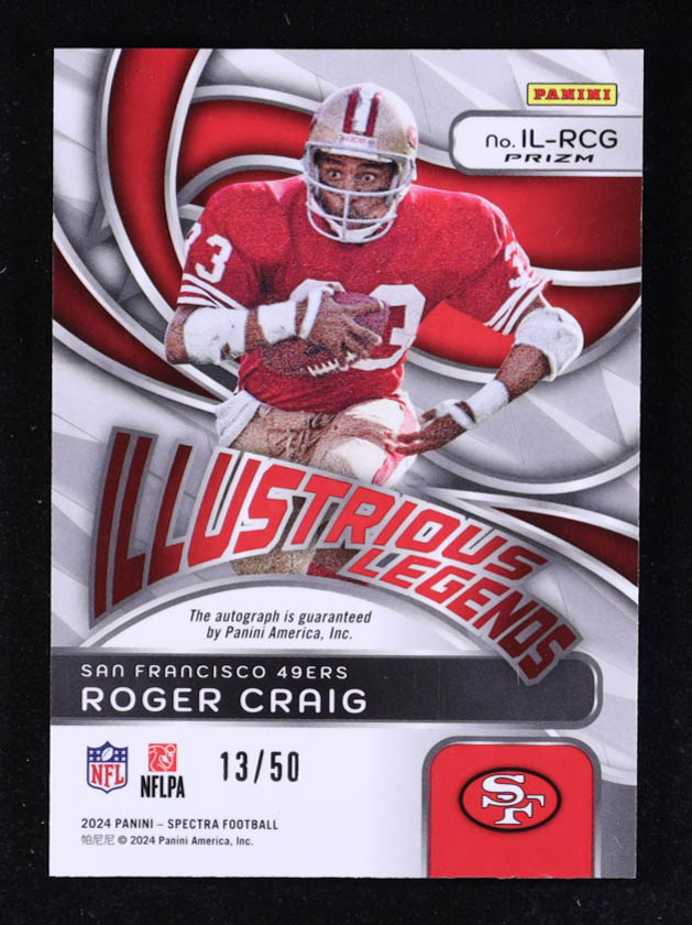 Roger Craig 2024 Panini Spectra Illustrious Legends Autographs Neon Blue #14 #13/50