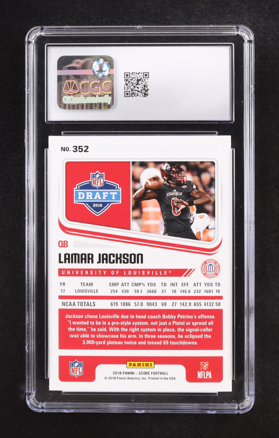 Lamar Jackson 2018 Panini Score Football #352 RC (CGC 10)