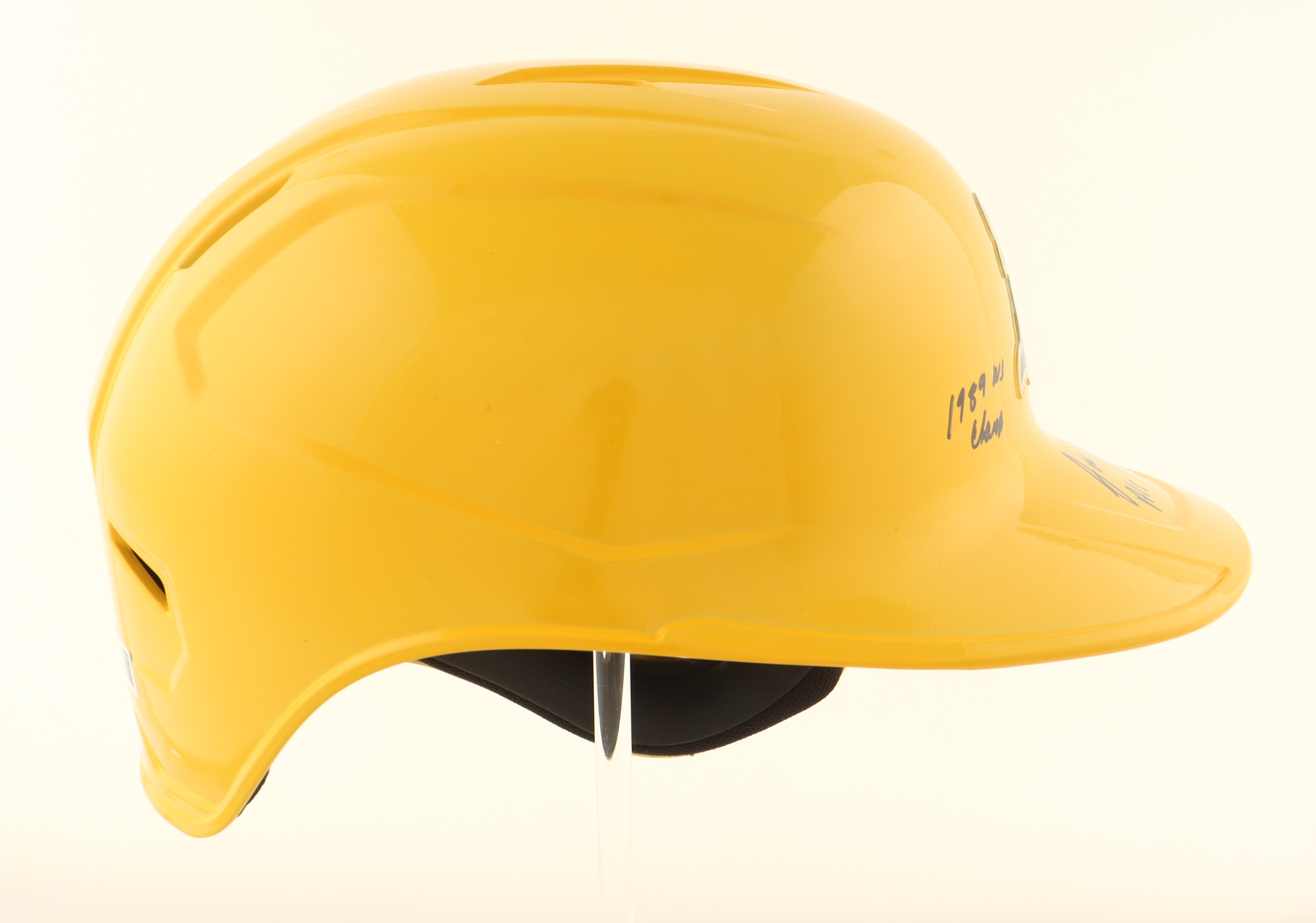 Rawlings Oakland Athletics full-size replica batting helmet has been hand-signed and inscribed by Jose Canseco.