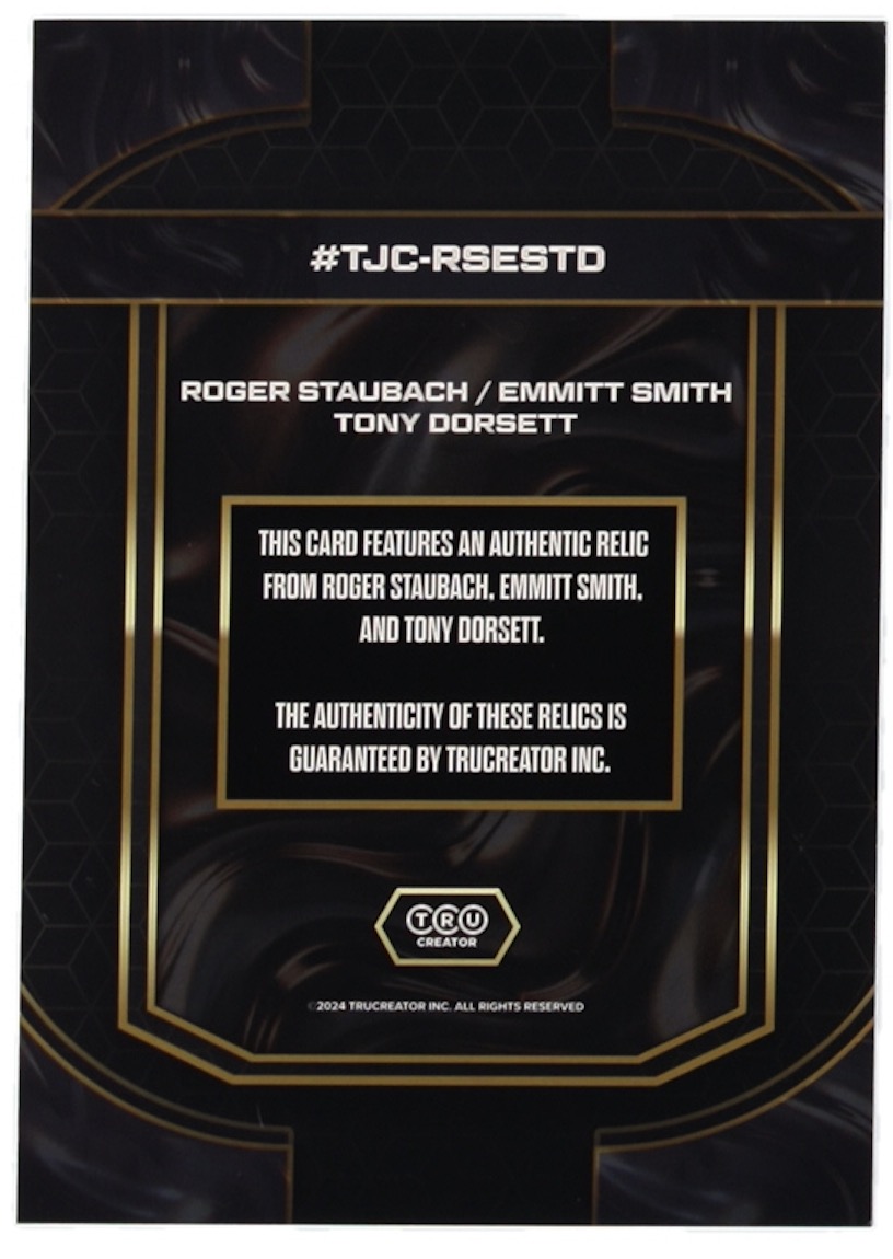Roger Staubach | Emmitt Smith | Tony Dorsett 2024 TruCreator Collection Jumbo Card #TJCRSESTD