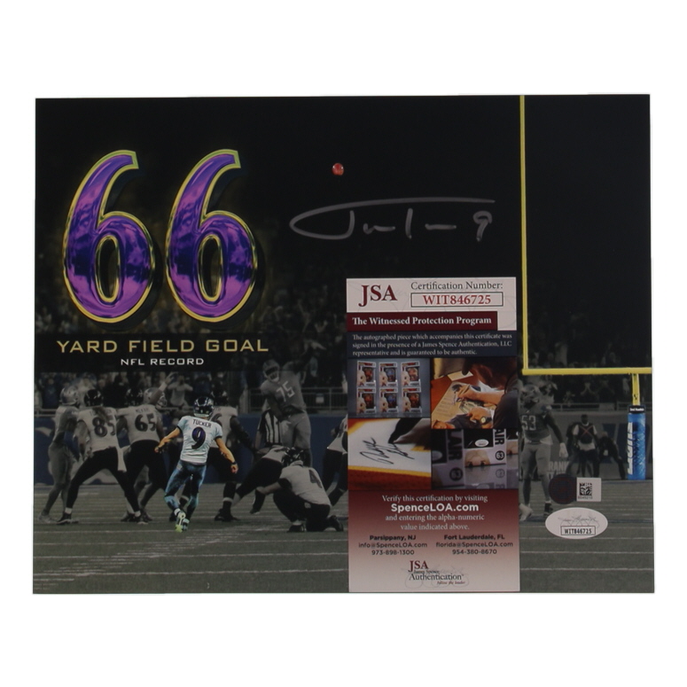 Photo measures 8" x 10" in size and has been hand-signed by Justin Tucker (Baltimore Ravens).