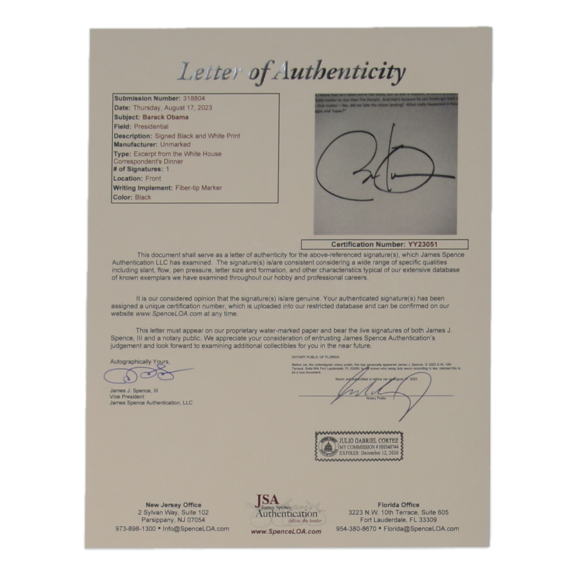 Barack Obama Signed Cut (JSA)