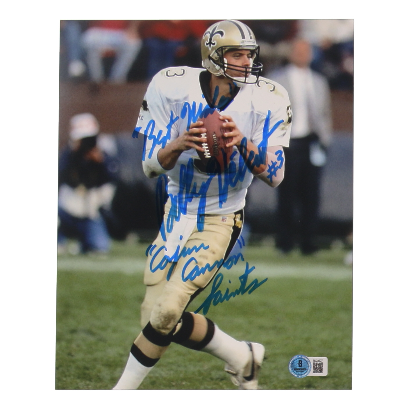 Bobby Hebert Signed Saints 8x10 Photo Inscribed "Best Wishes", "Cajun Cannon" & "Saints" (Beckett)
