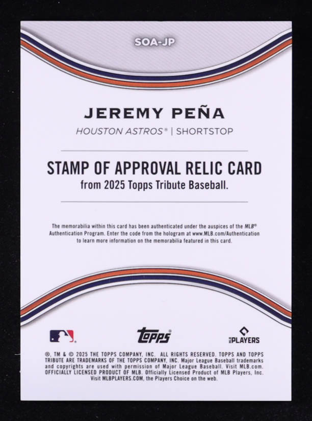 Jeremy Pena 2025 Topps Tribute Stamp of Approval Relics Green #SOAJP #83/99