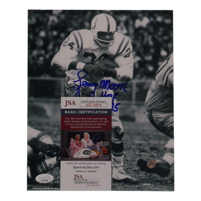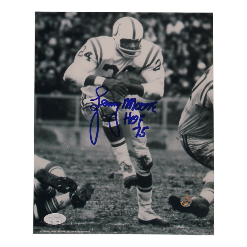 Lenny Moore Signed Colts 8x10 Photo Inscribed "HOF 75" (JSA)