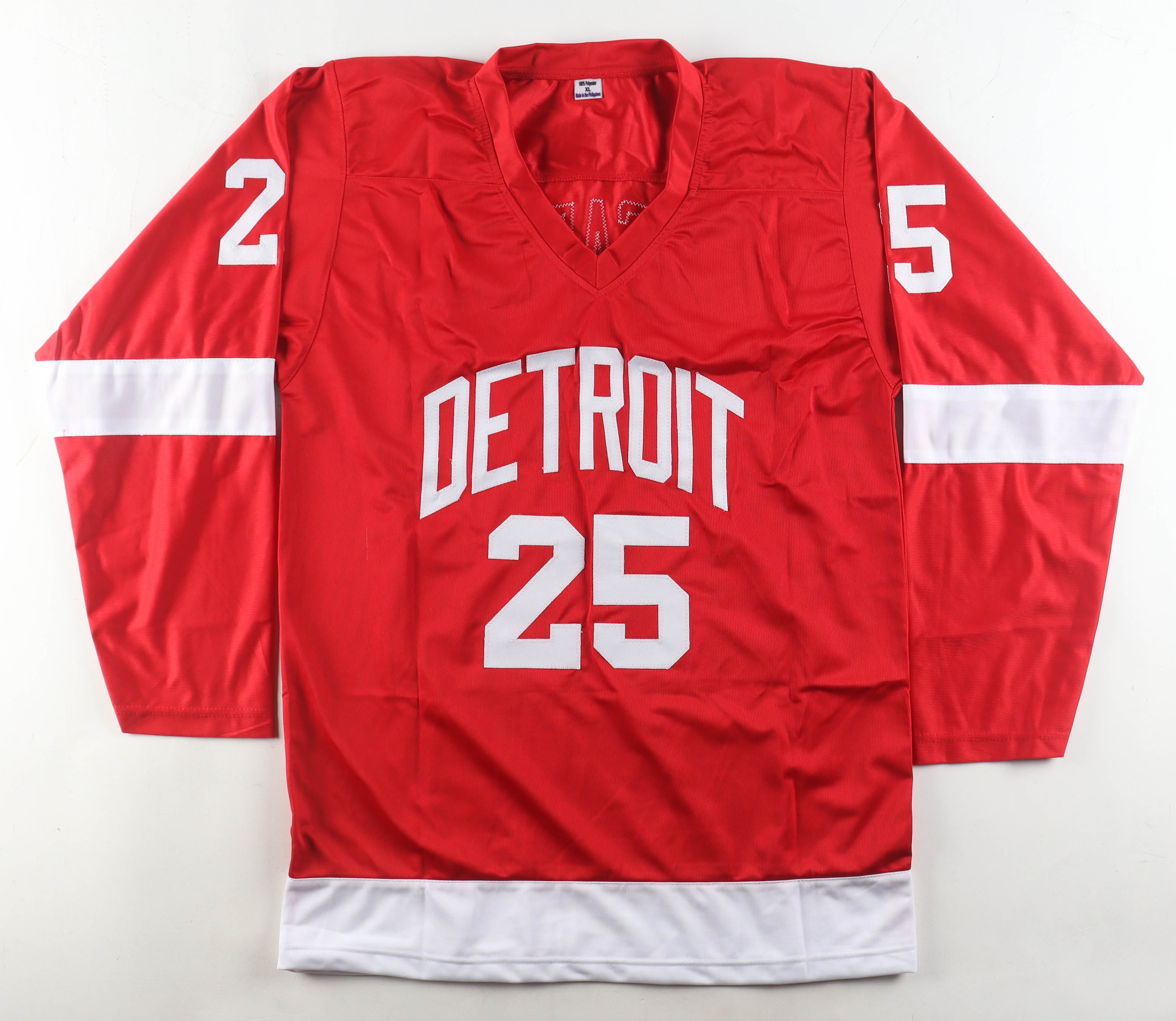 Custom jersey with everything sewn on, size XL. Hand-signed and inscribed by Darren McCarty.