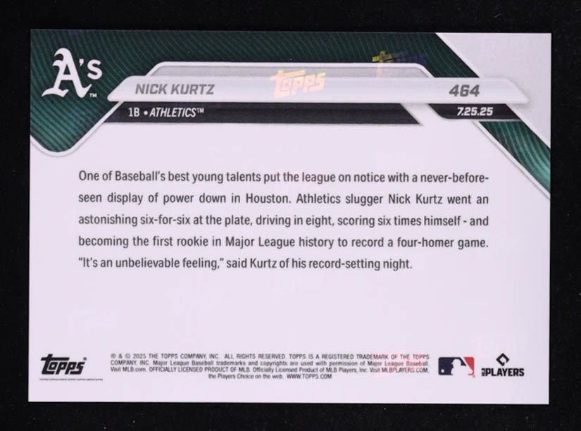 Please see photos for details regarding the condition of the card (Oakland Athletics).