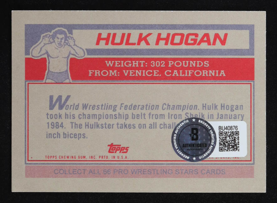 Card has been hand signed by Hulk Hogan (D. 2025, HOF). Please see photos for more details regarding the condition of the card.