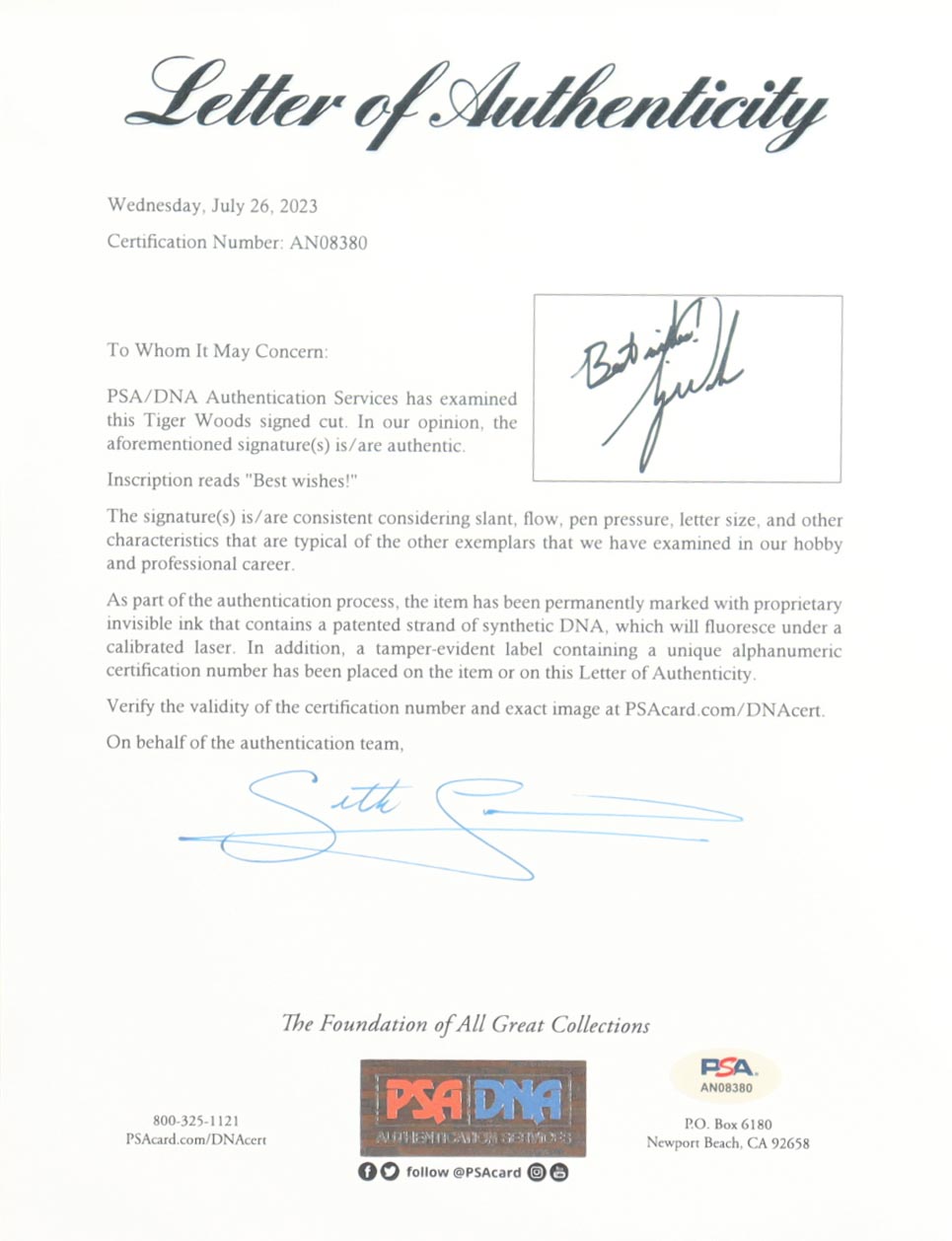 The autograph(s) includes an official PSA/DNA hologram and matching LOA for authenticity purposes.