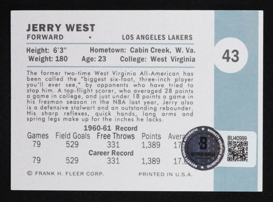 Jerry West Signed Custom Rookie Reprint Card (Beckett)