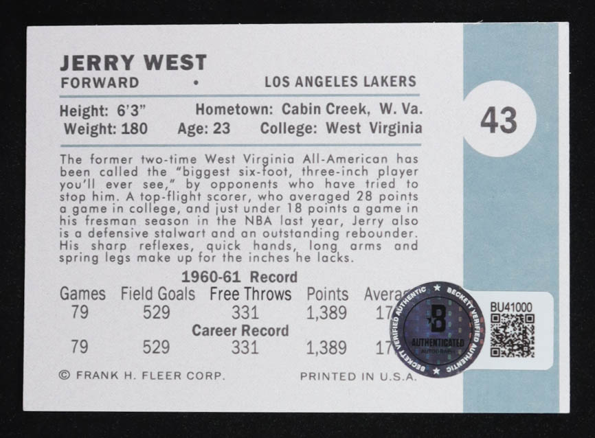 Jerry West Signed Custom Rookie Reprint Card (Beckett)