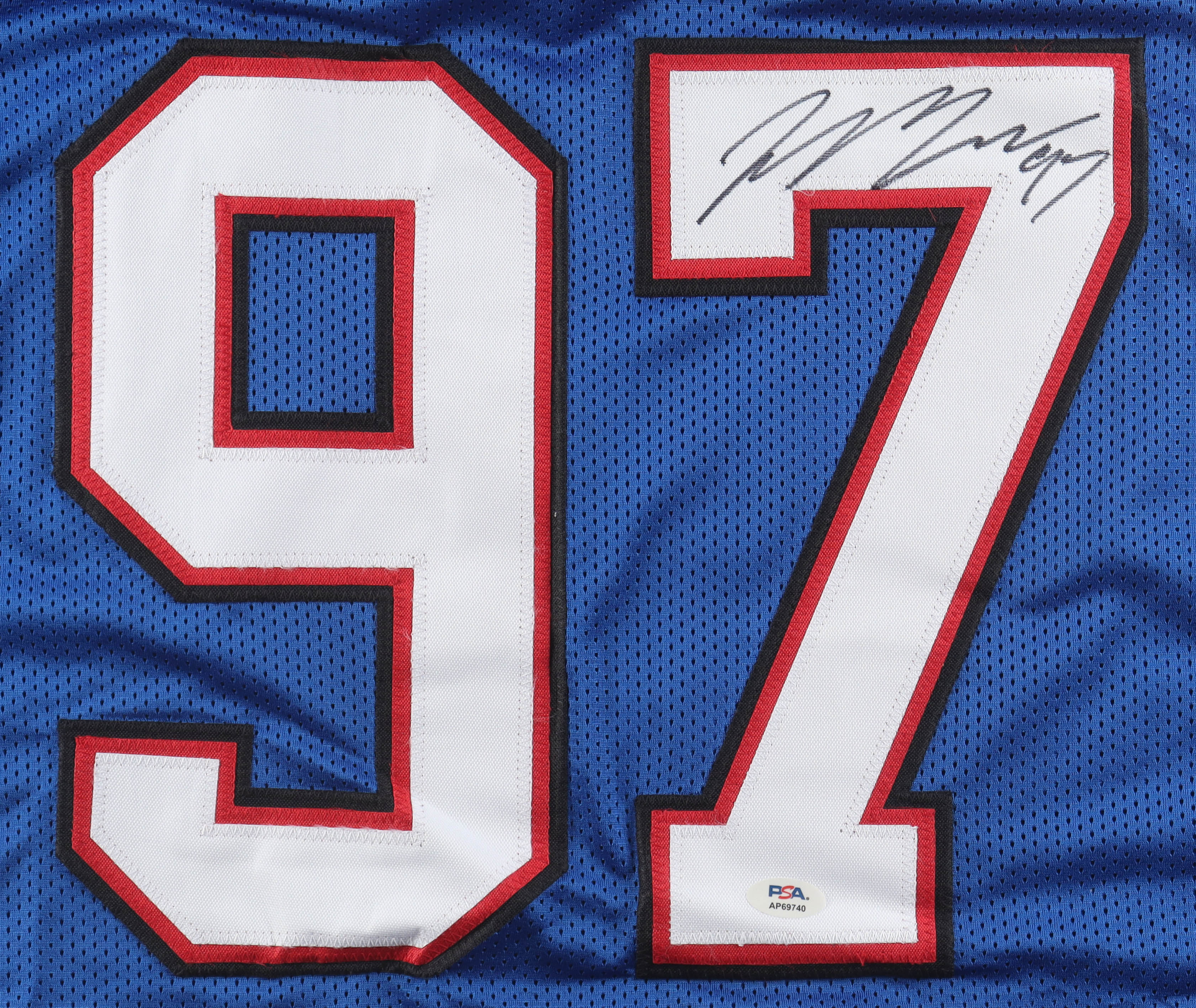 Custom jersey with everything sewn on, size XL. Hand-signed by Joey Bosa.