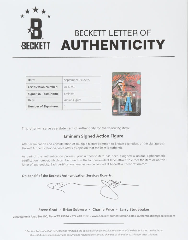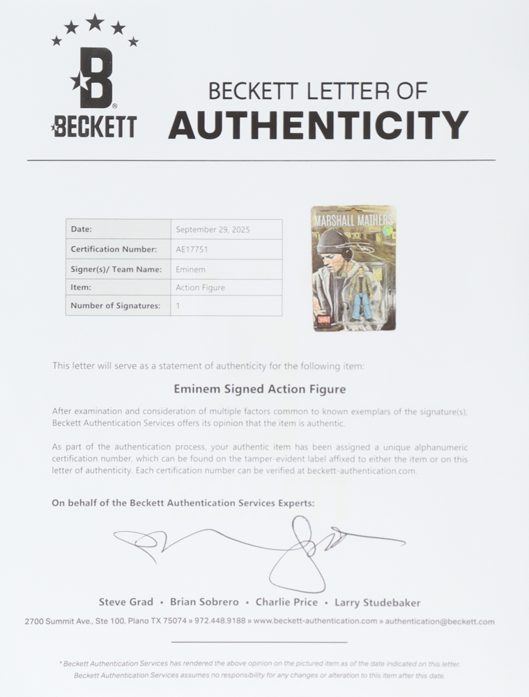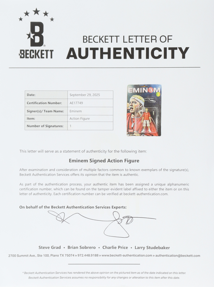 Eminem Signed Set of (3) Marshall Mathers Action Figures (Beckett)