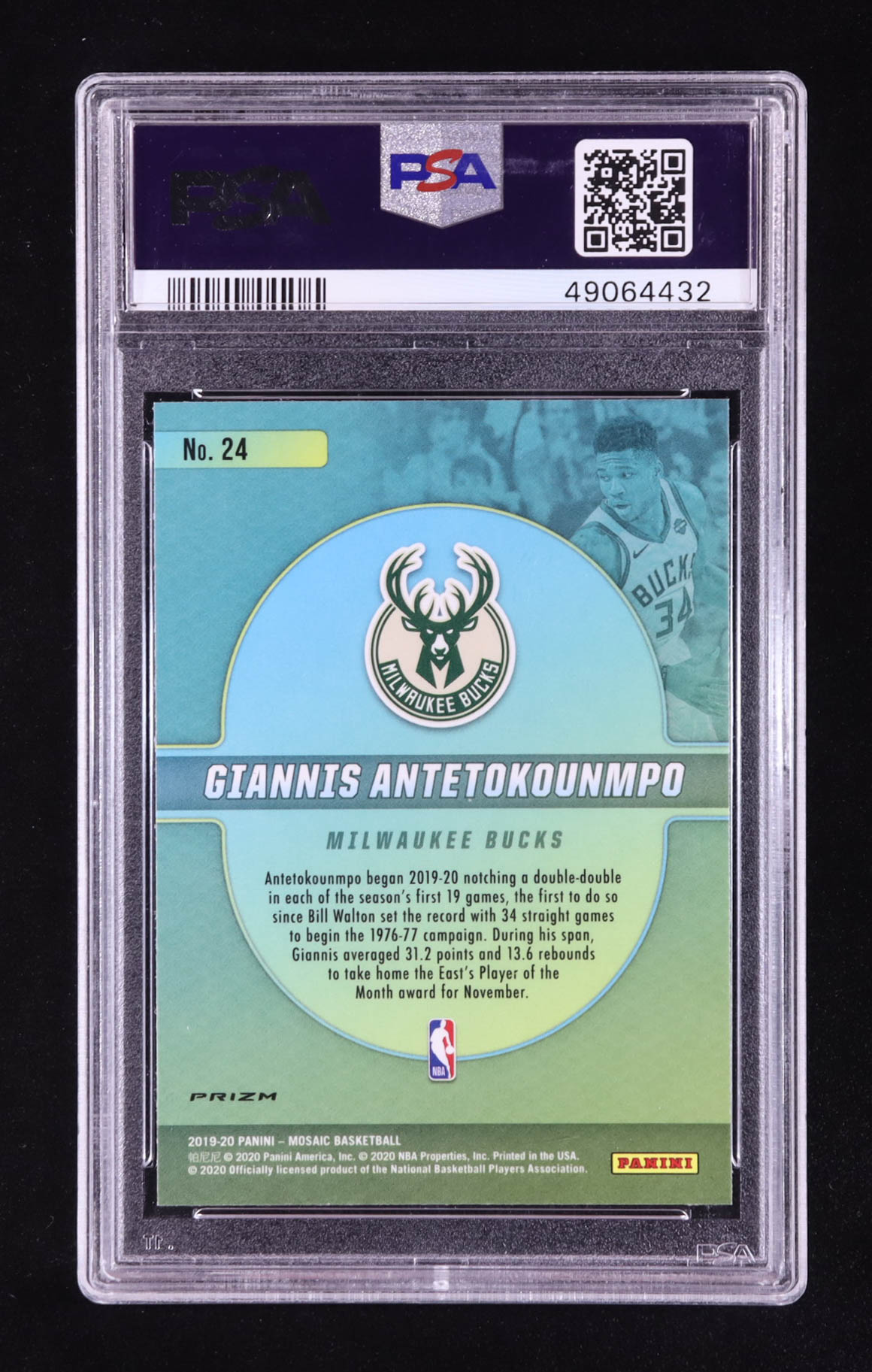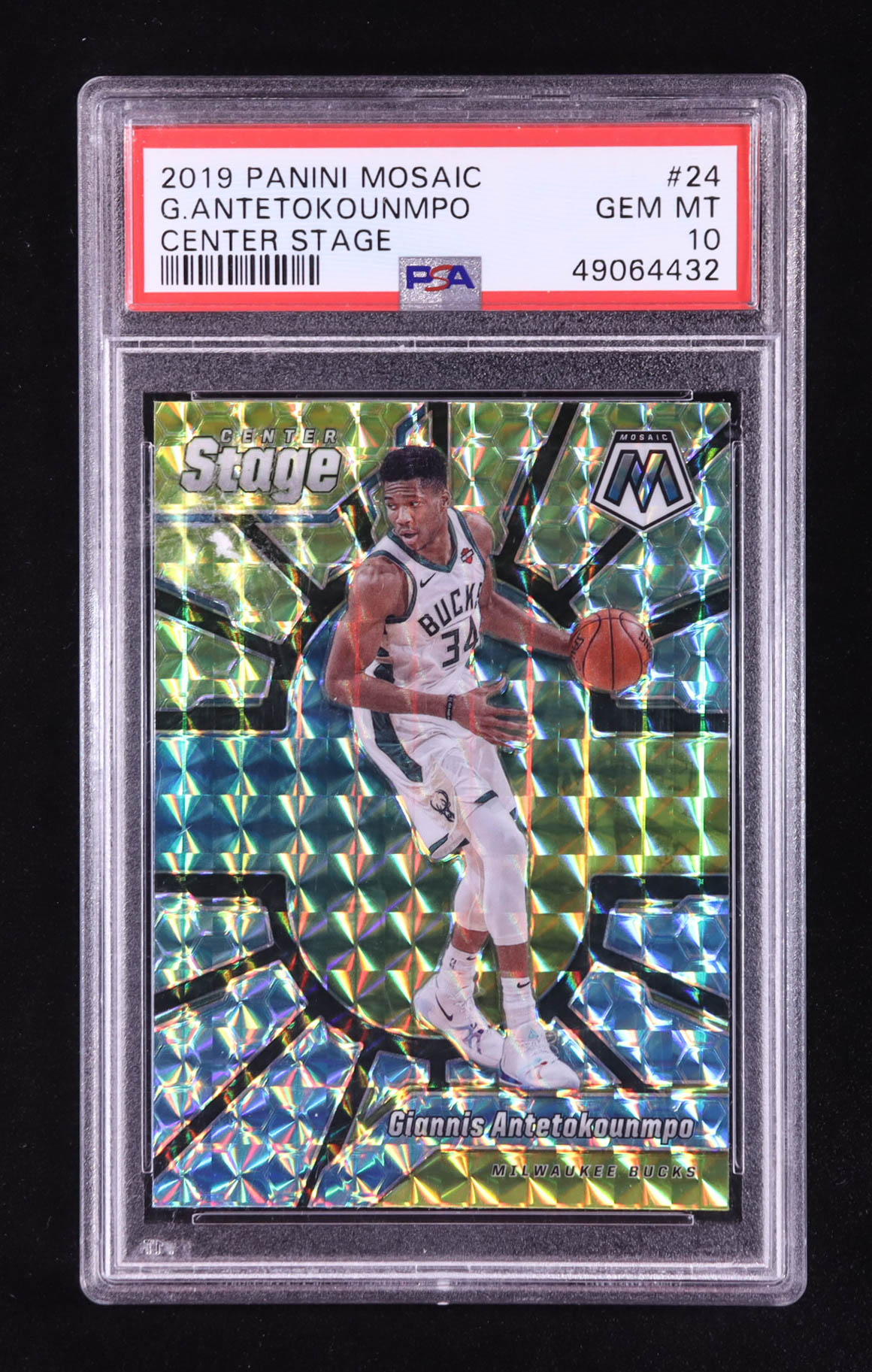 Giannis Antetokounmpo 2019-20 Panini Mosaic Center Stage Prizms #24 (PSA 10)