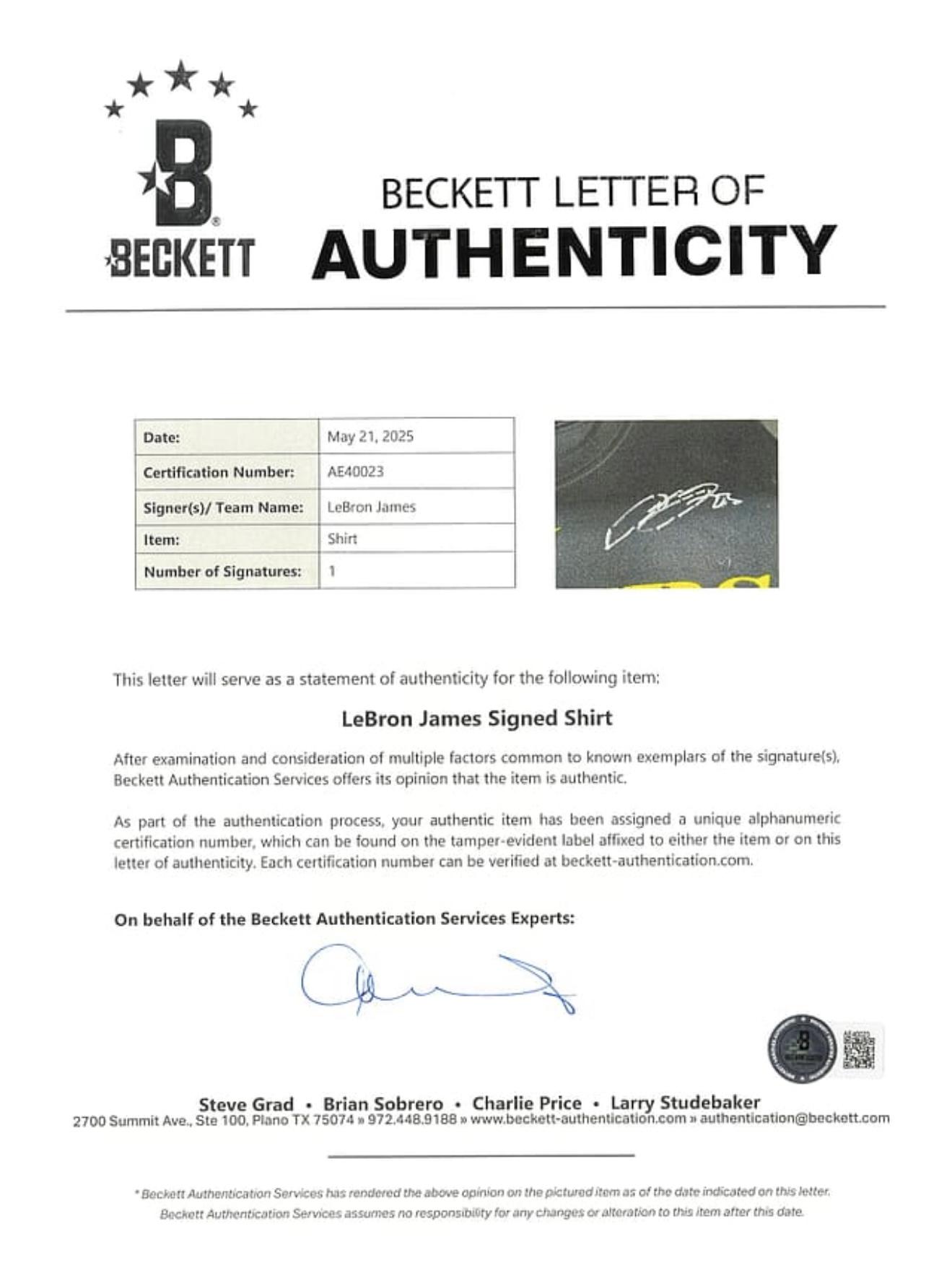 LeBron James Signed 2018-19 Lakers Game-Used Warm Up Shirt (MEARS & Beckett)