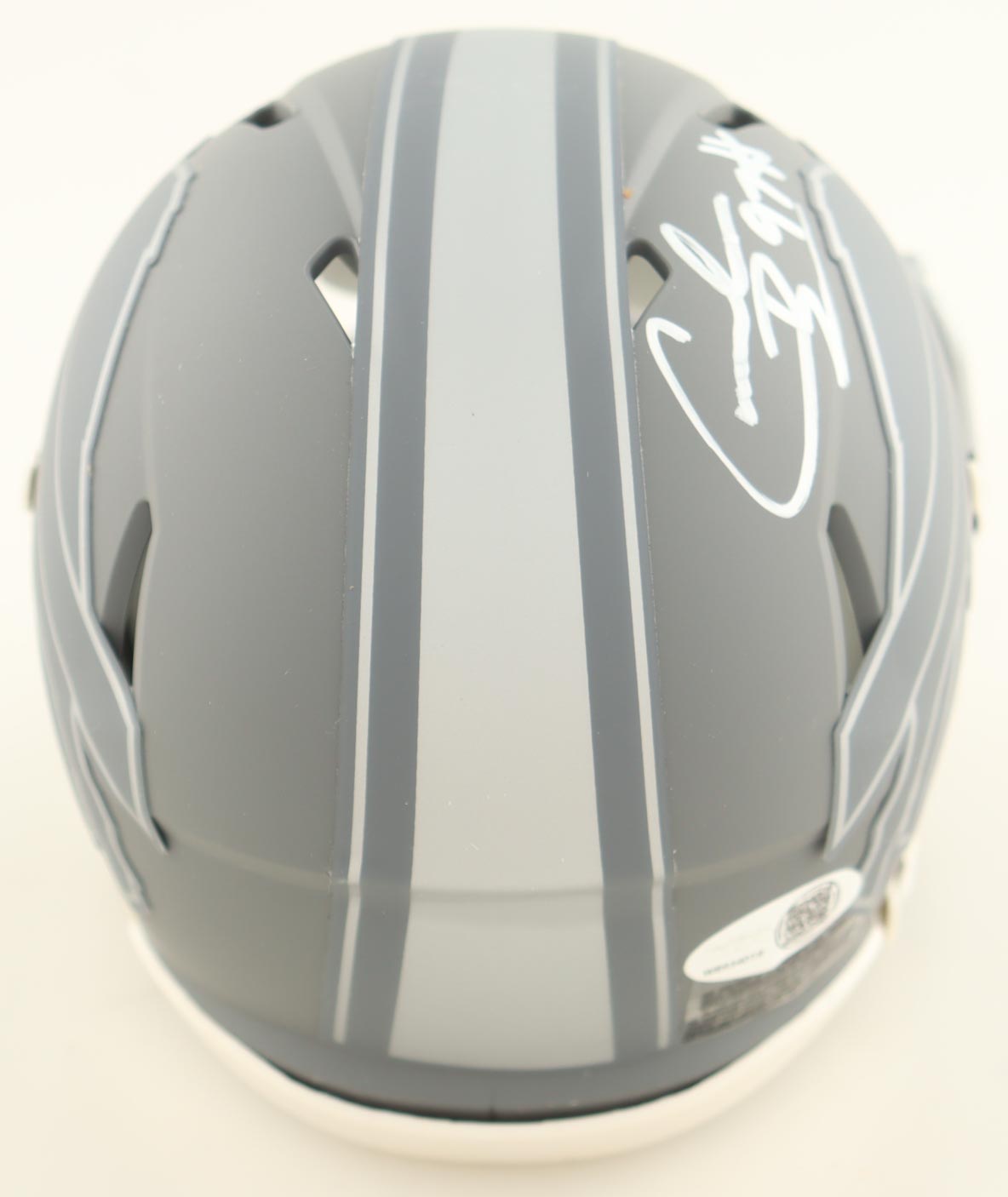 Riddell Buffalo Bills Slate Alternate Speed mini helmet. Hand-signed by Cornelius Bennett.