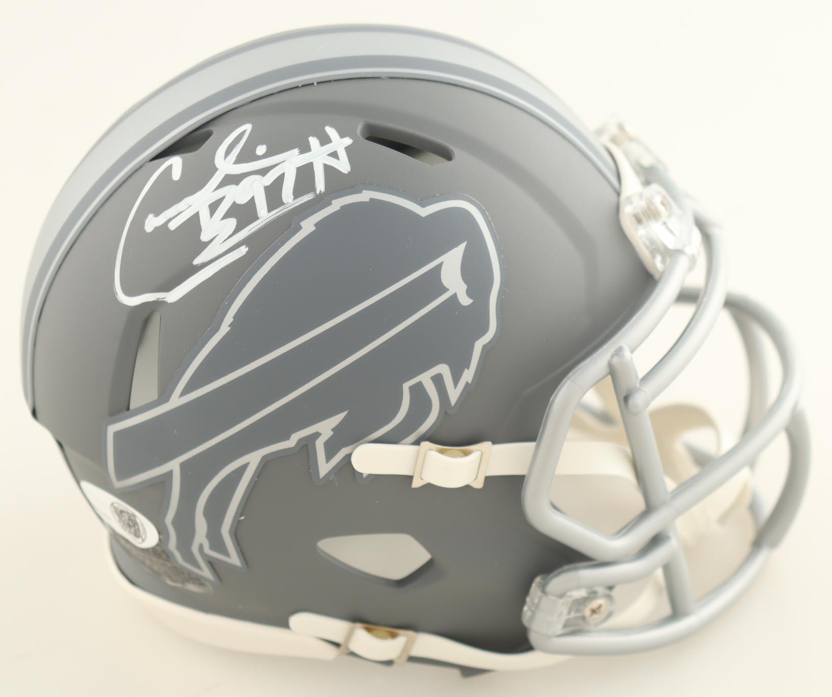 Riddell Buffalo Bills Slate Alternate Speed mini helmet. Hand-signed by Cornelius Bennett.