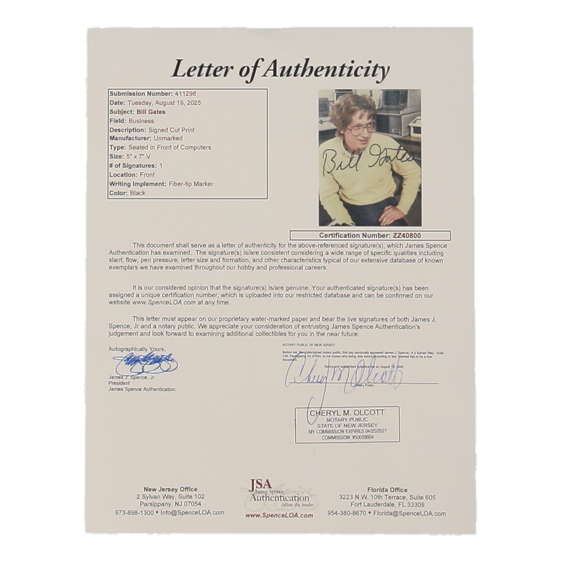 Print measuring 5" x 7" in size. Hand-signed by Bill Gates.