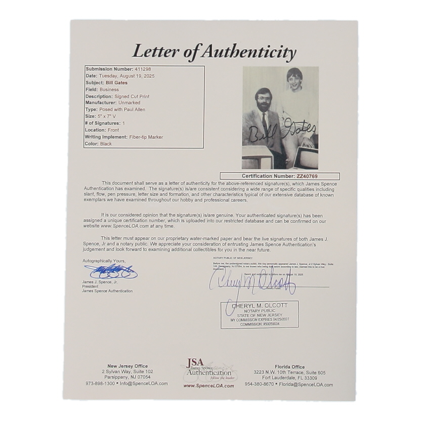 Print measuring 5" x 7" in size. Hand-signed by Bill Gates.
