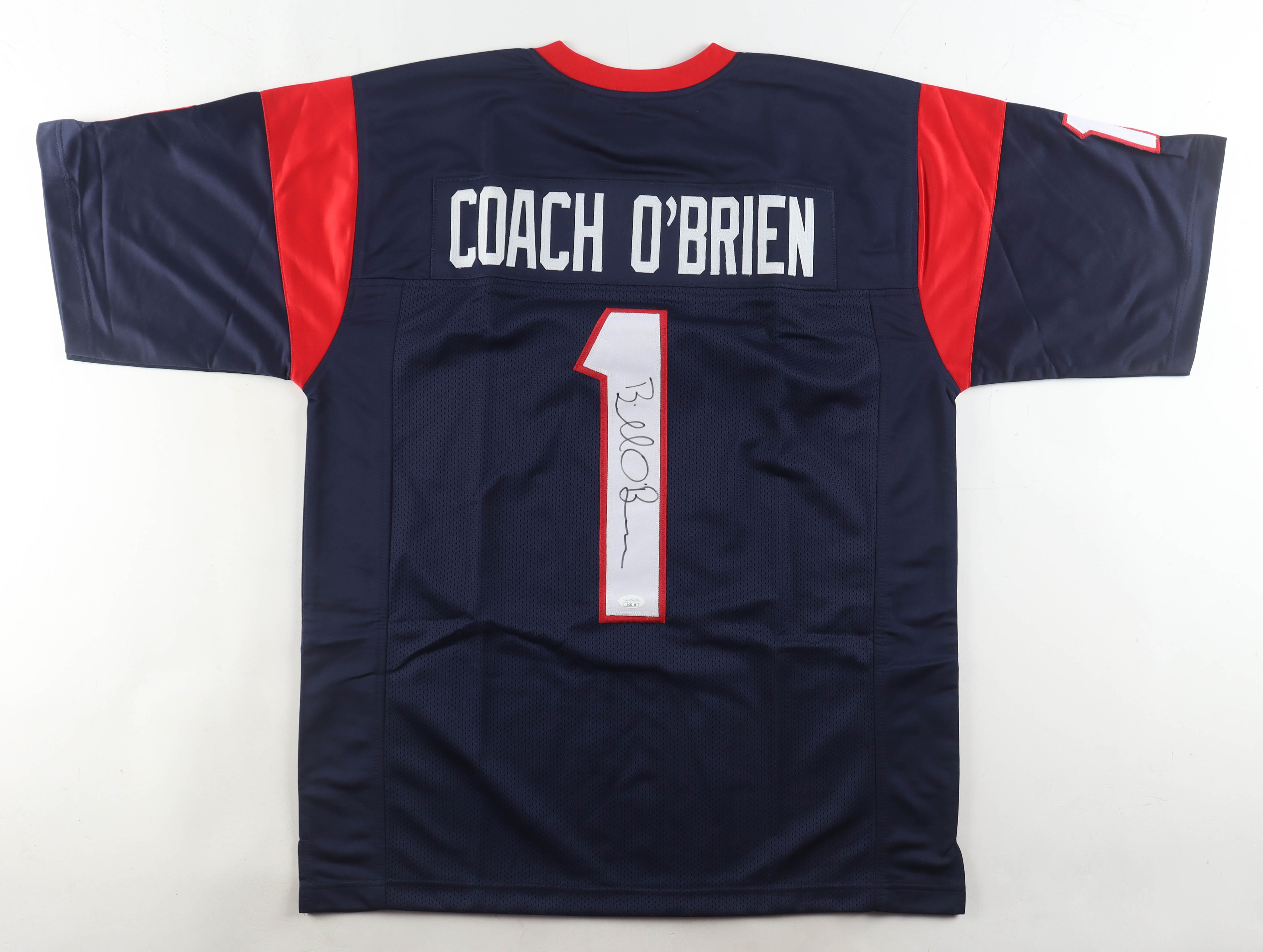 Custom jersey with everything sewn on, size XL. Hand-signed by Bill O'Brien (Head Coach / General Manager).