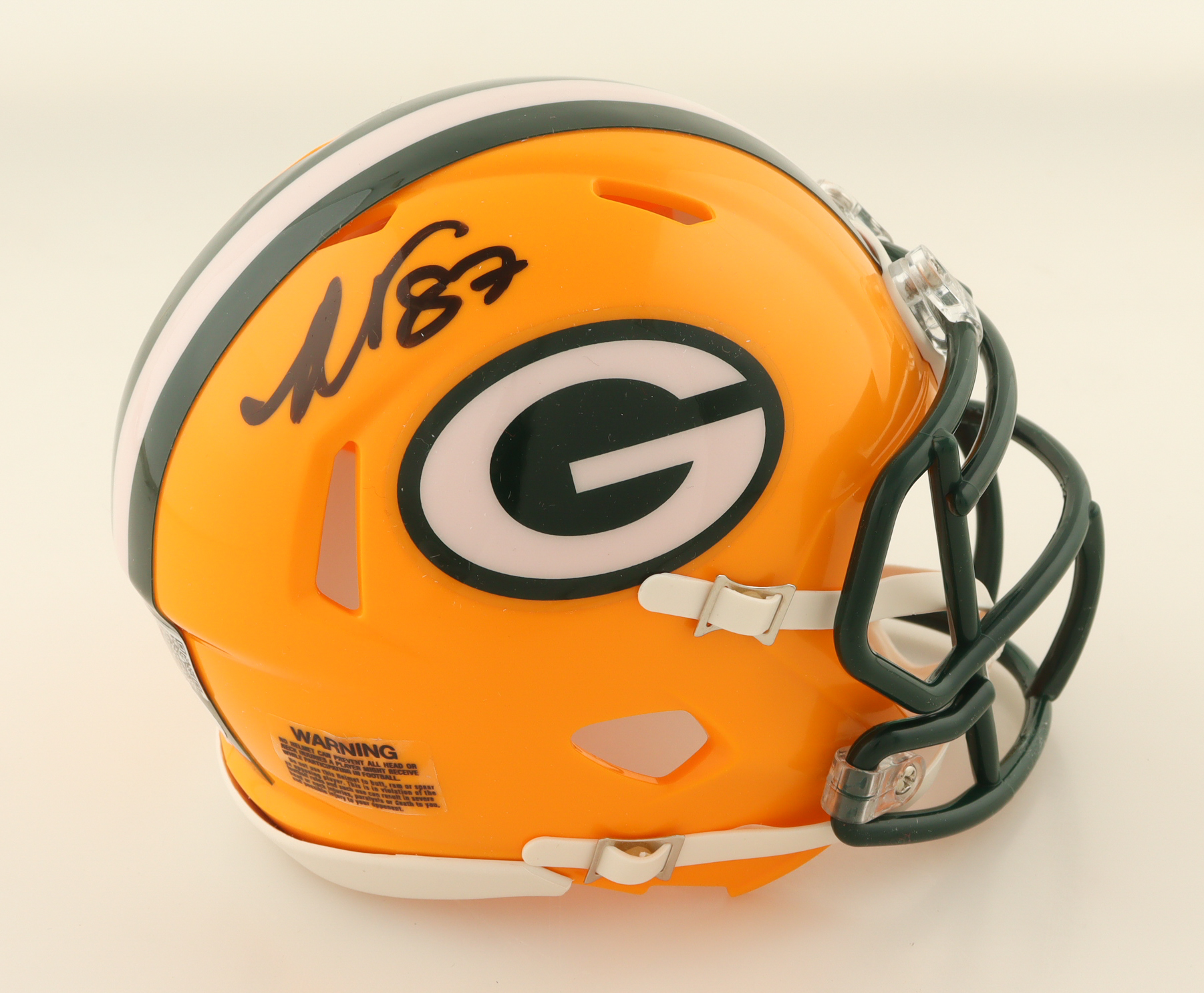 Riddell Green Bay Packers Speed mini helmet. Hand-signed by Romeo Doubs.