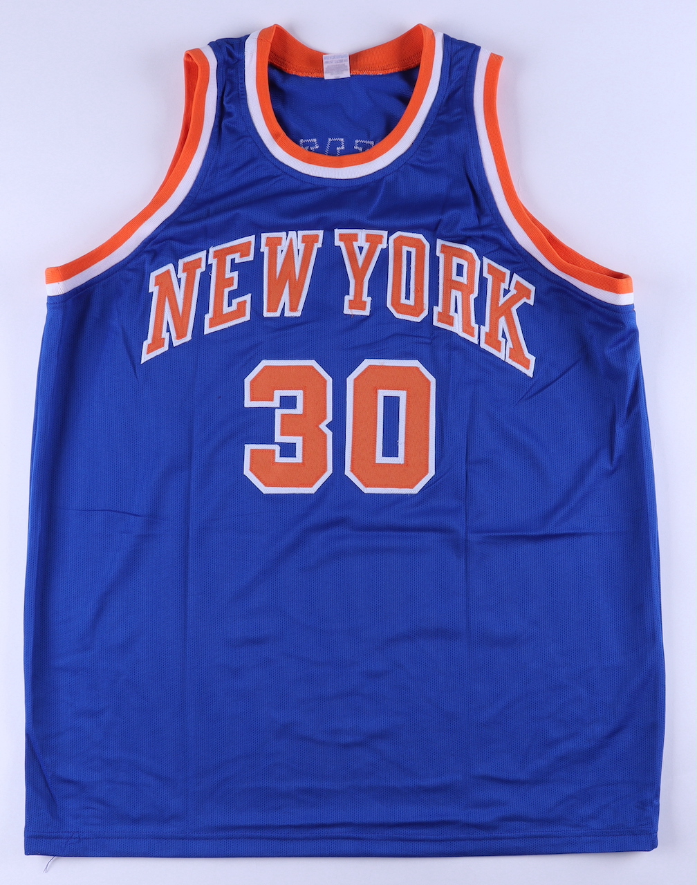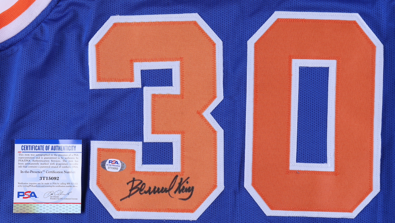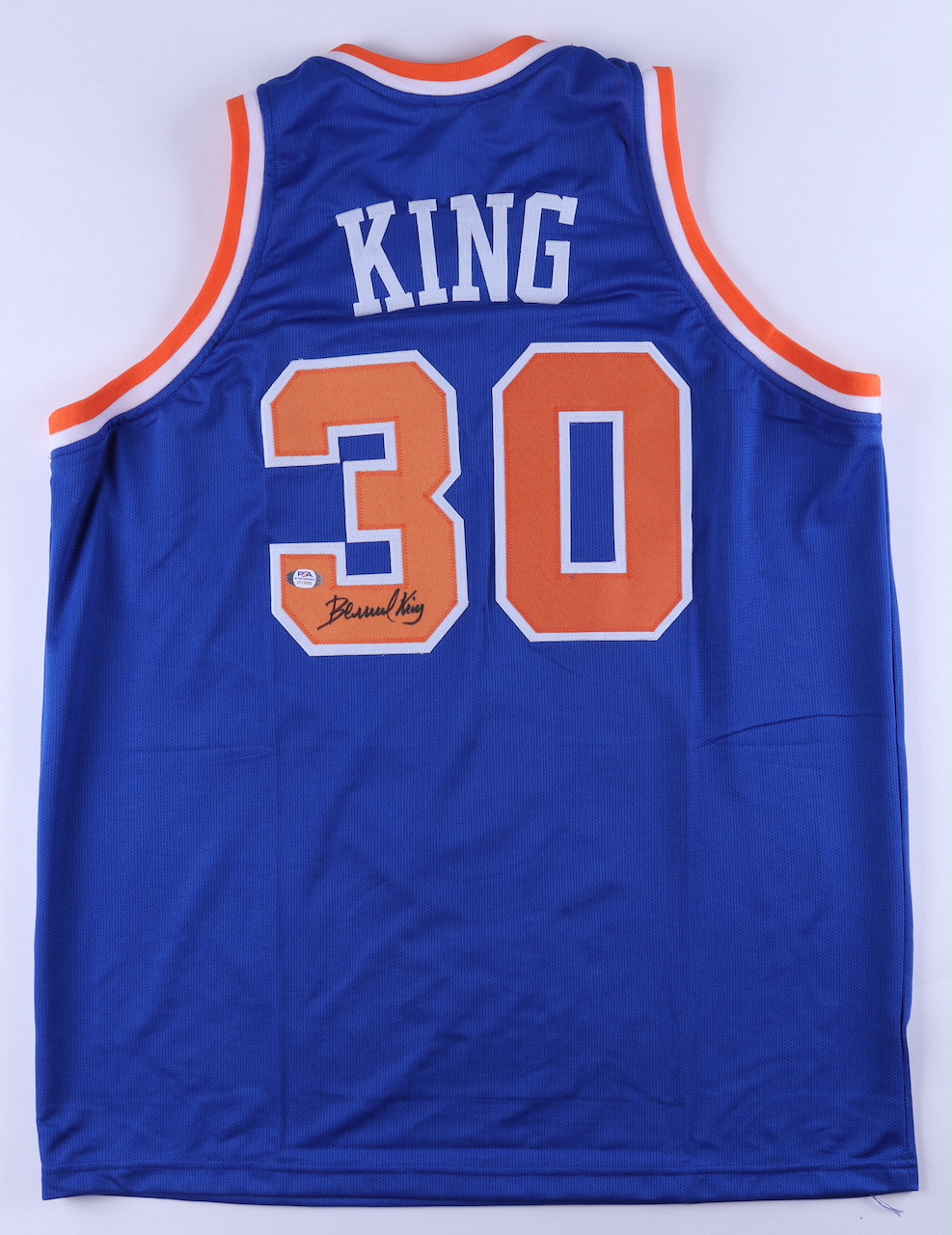 Custom jersey. Everything is sewn on size XL. Hand-signed by Bernard King (HOF). Please note, the signature has bled.