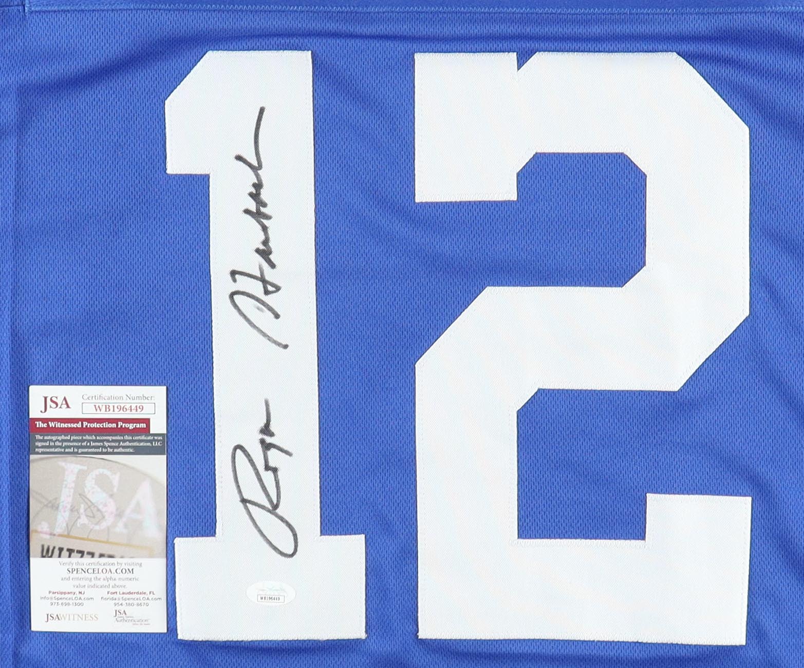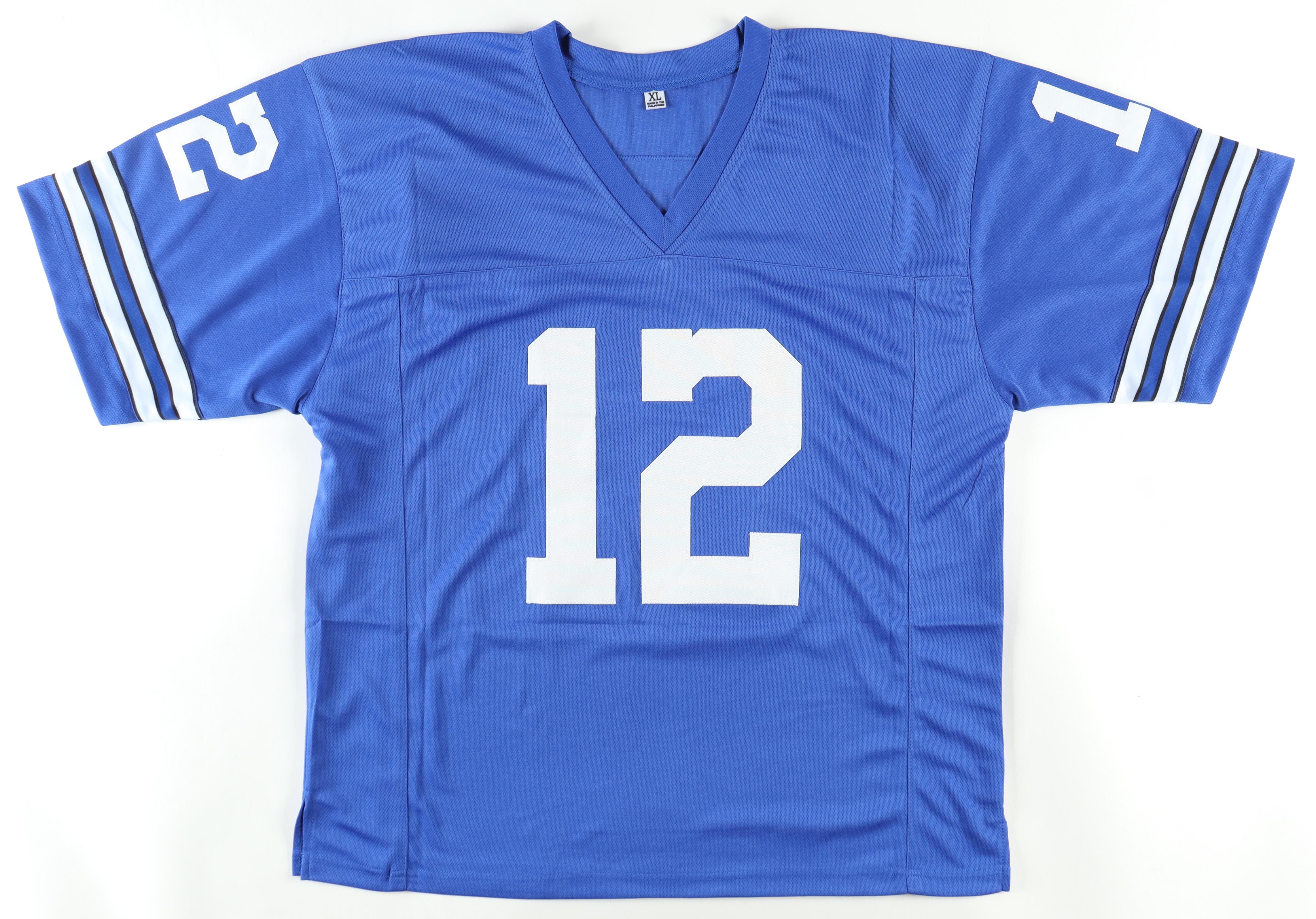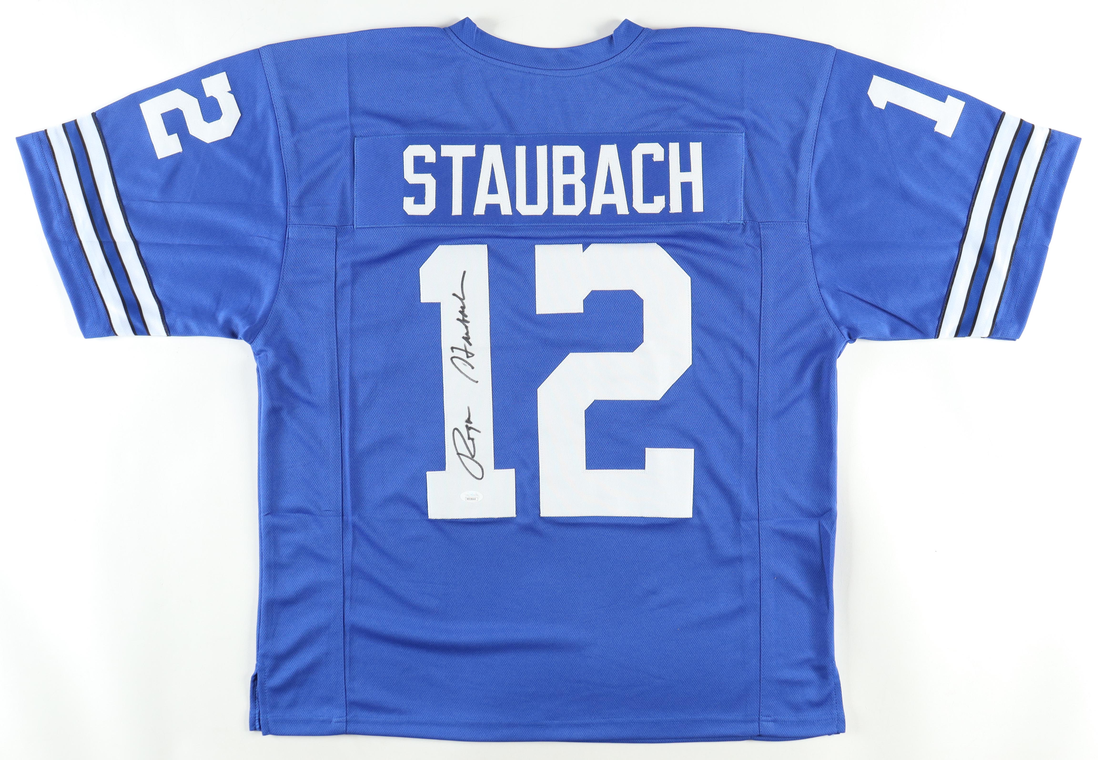 Custom jersey with everything sewn on, size XL. Hand-signed by Roger Staubach (HOF).