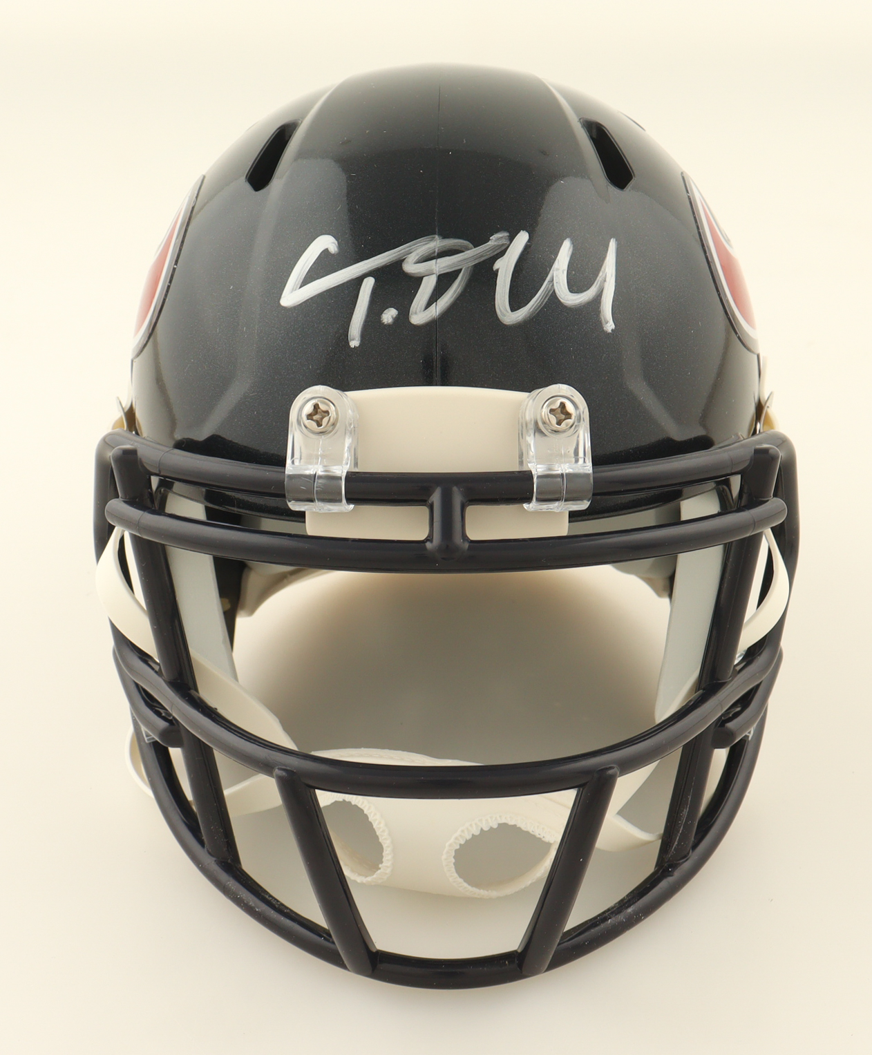 Riddell Houston Texans speed mini helmet has been hand-signed by Tank Dell.