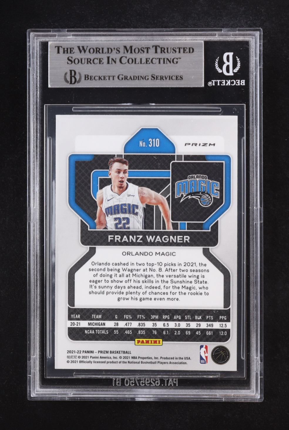 Franz Wagner Signed 2021-22 Panini Prizm #310 RC (BGS)