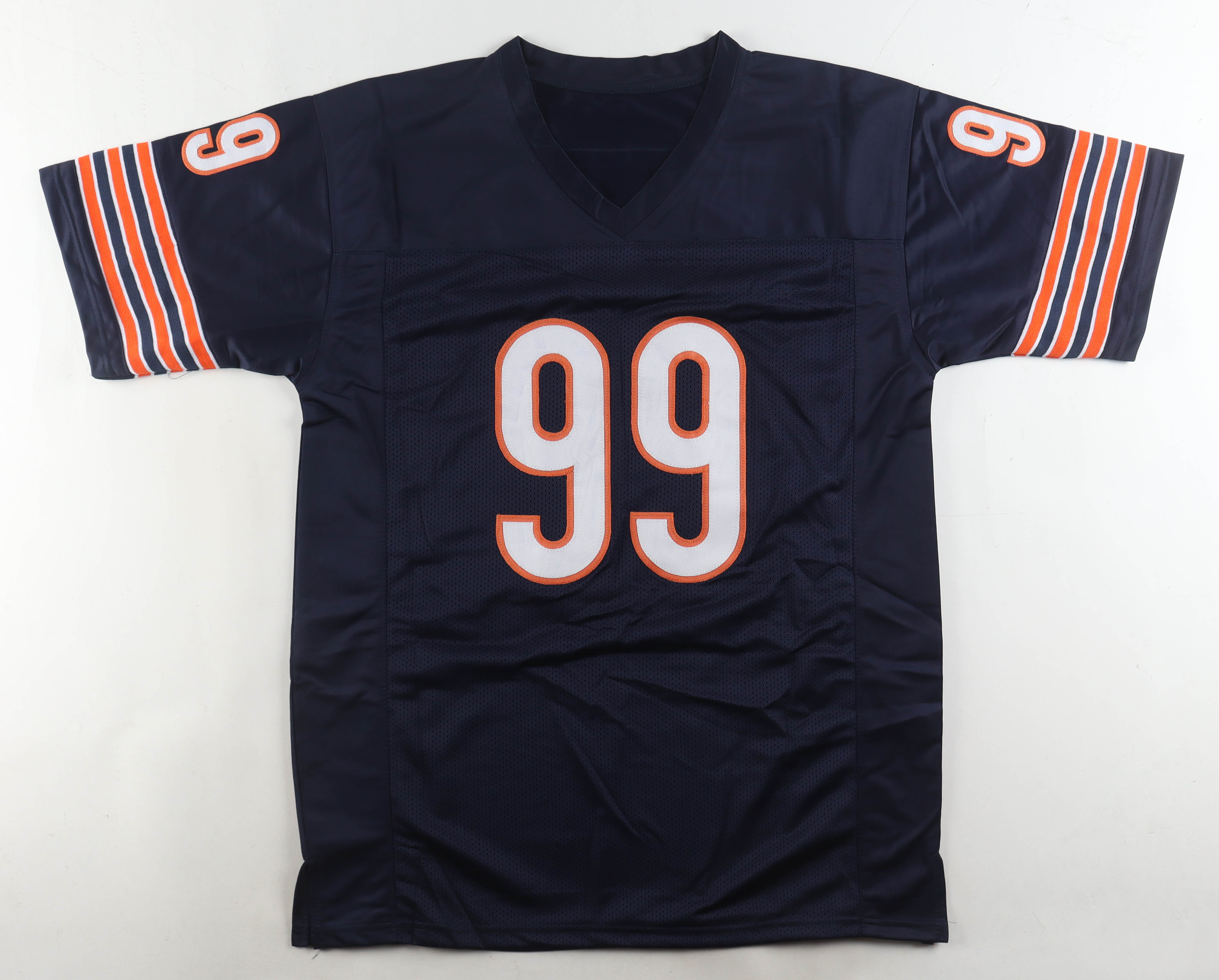 Custom jersey with everything sewn on, size XL. Hand-signed and inscribed by Dan Hampton (HOF).