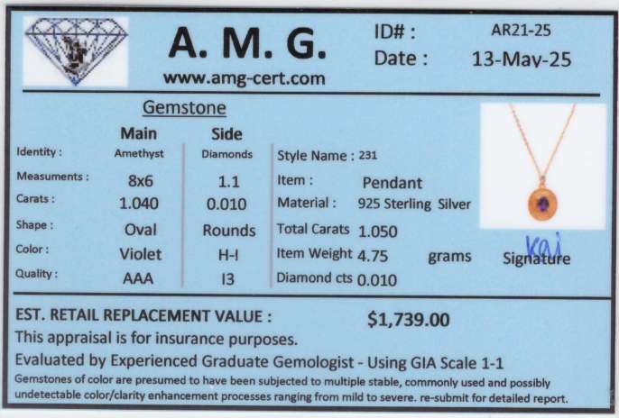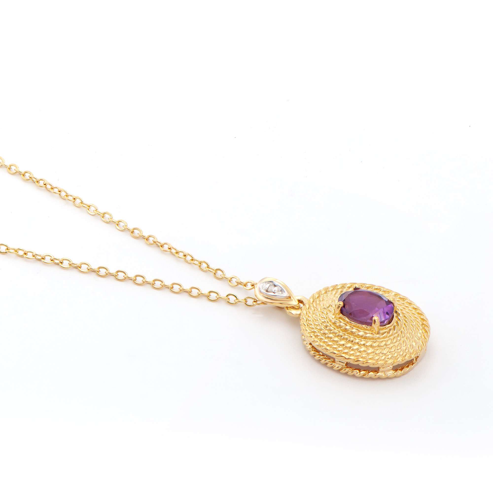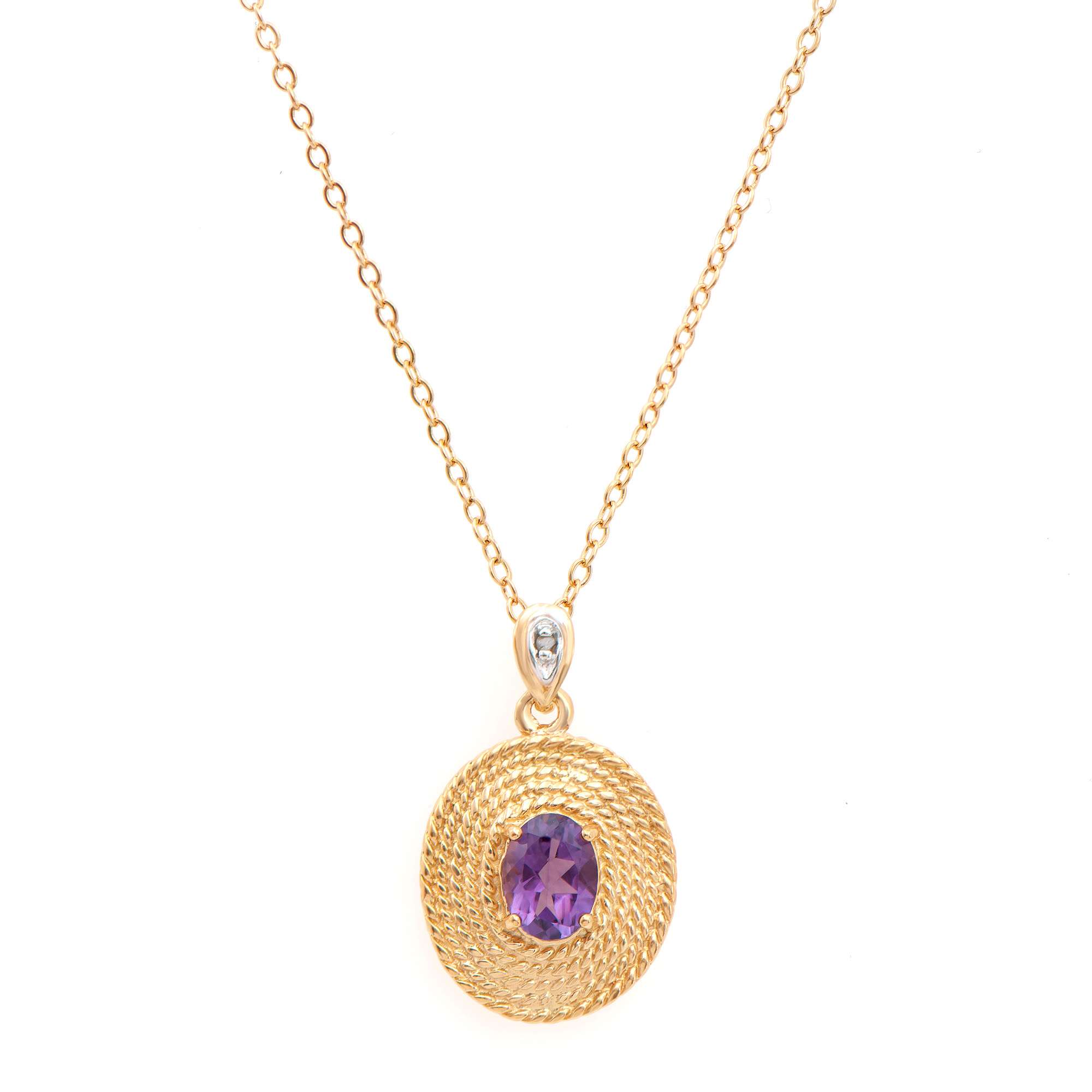 1.05 CTW Natural Amethyst & Diamonds 18K Gold Plated Designer Pendant 18 in H-I, I3 | Estimated Retail Value: $1,739 (AMG)