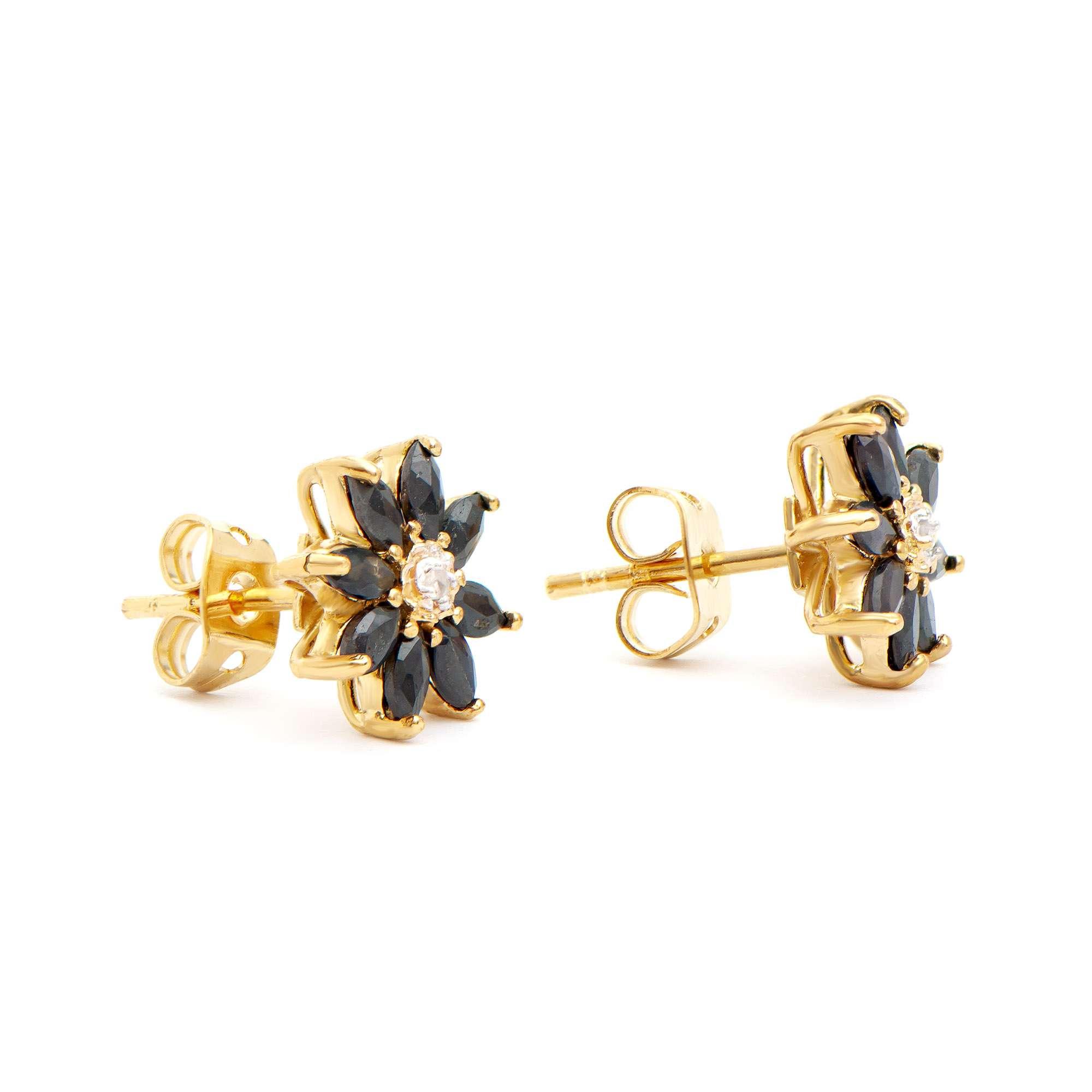 1.63 CTW Natural Sapphire & Diamonds 18K Gold Plated Designer Earrings | Estimated Retail Value: $1,309 (AMG)