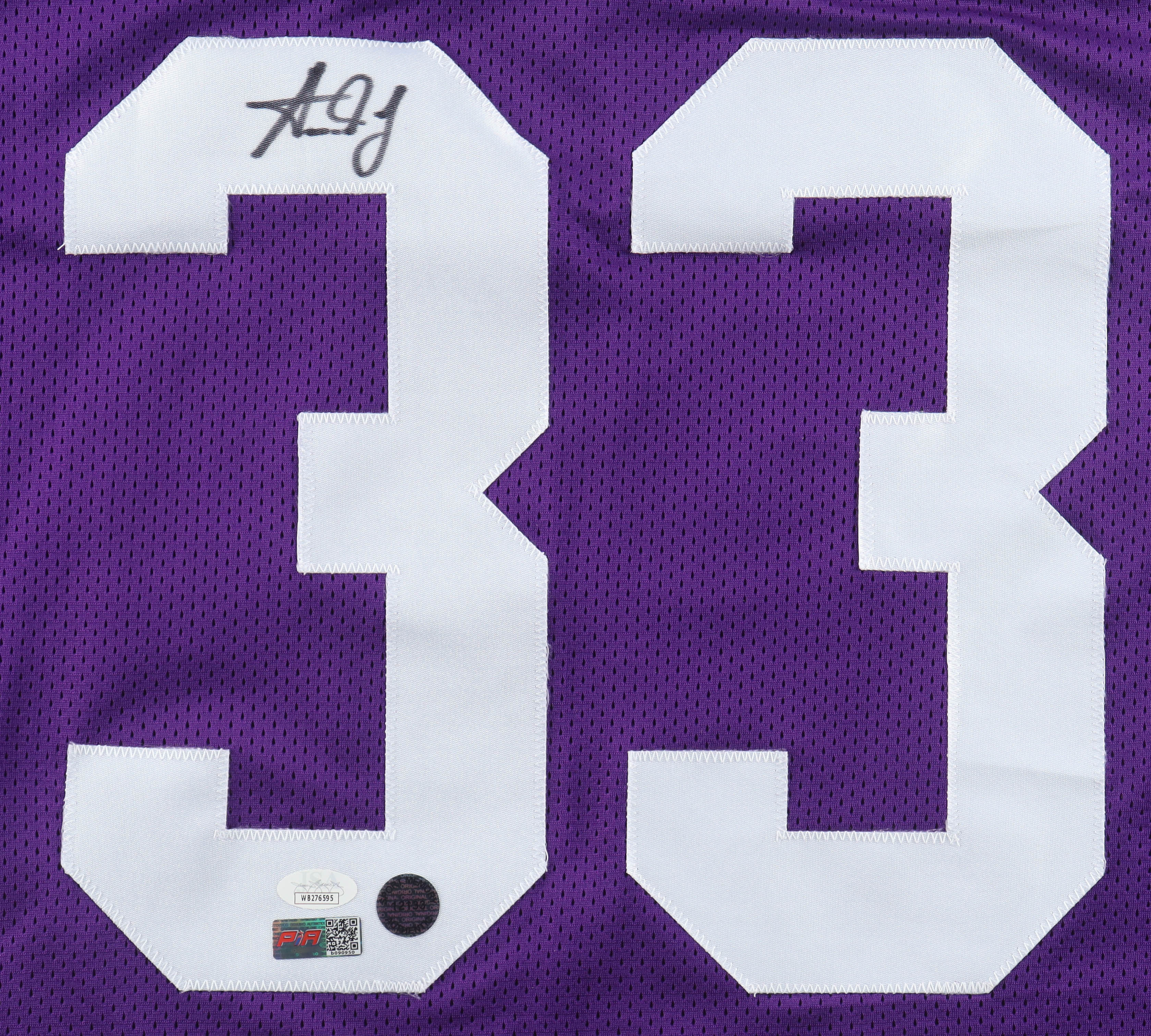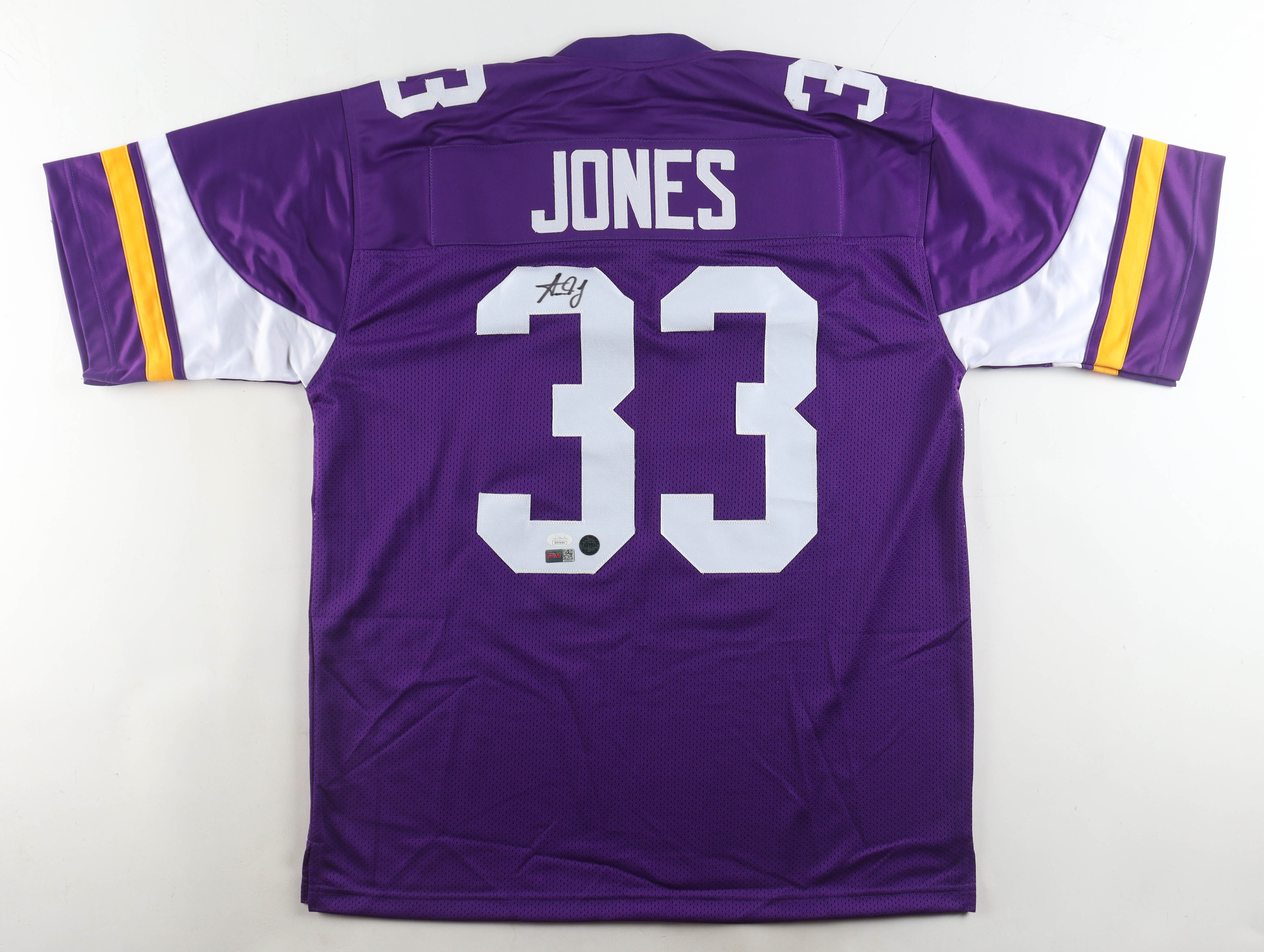 Custom jersey with everything sewn on, size XL. Hand-signed by Aaron Jones.