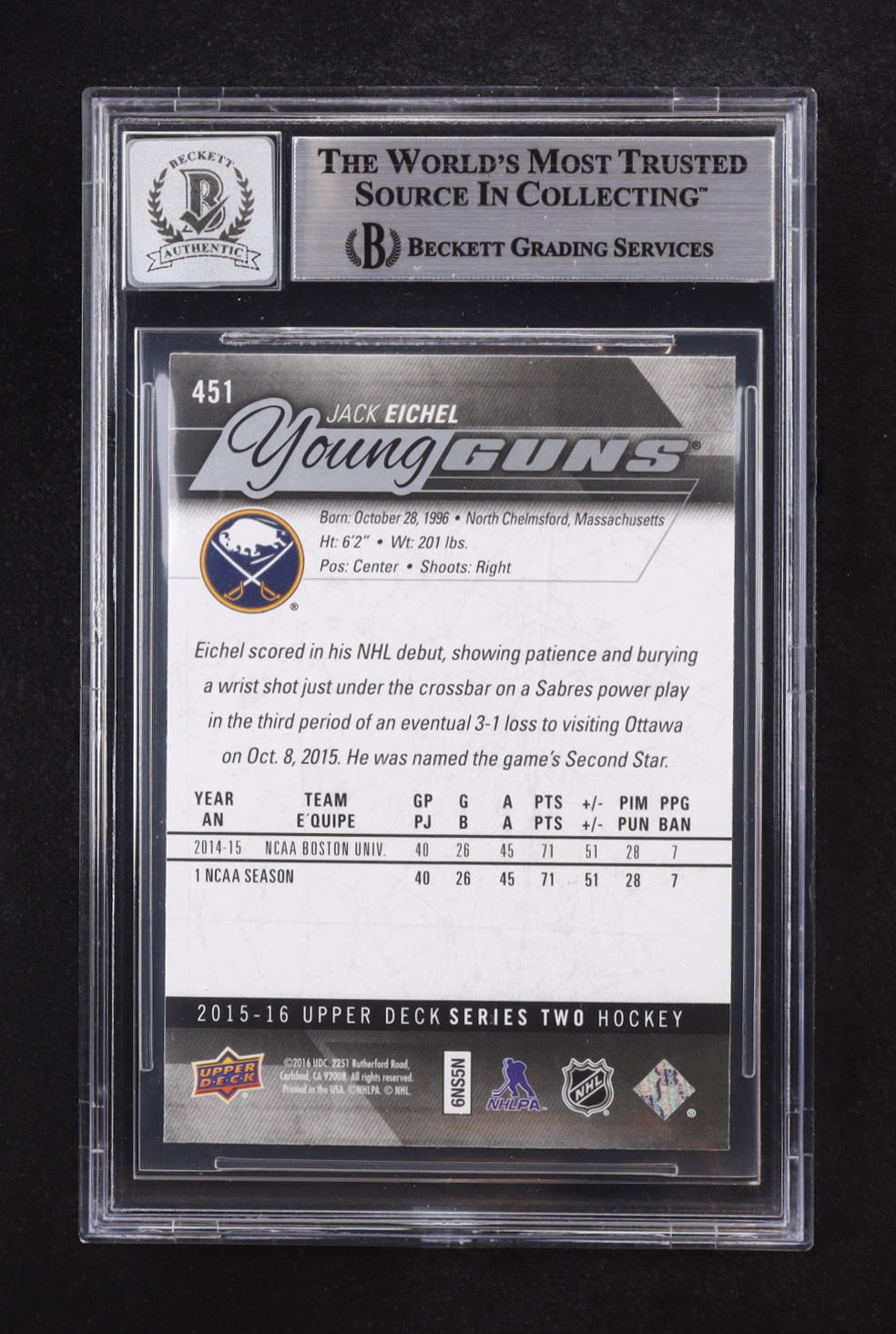 Jack Eichel Signed 2015-16 Upper Deck YG #451 RC (BGS | Auto 10)