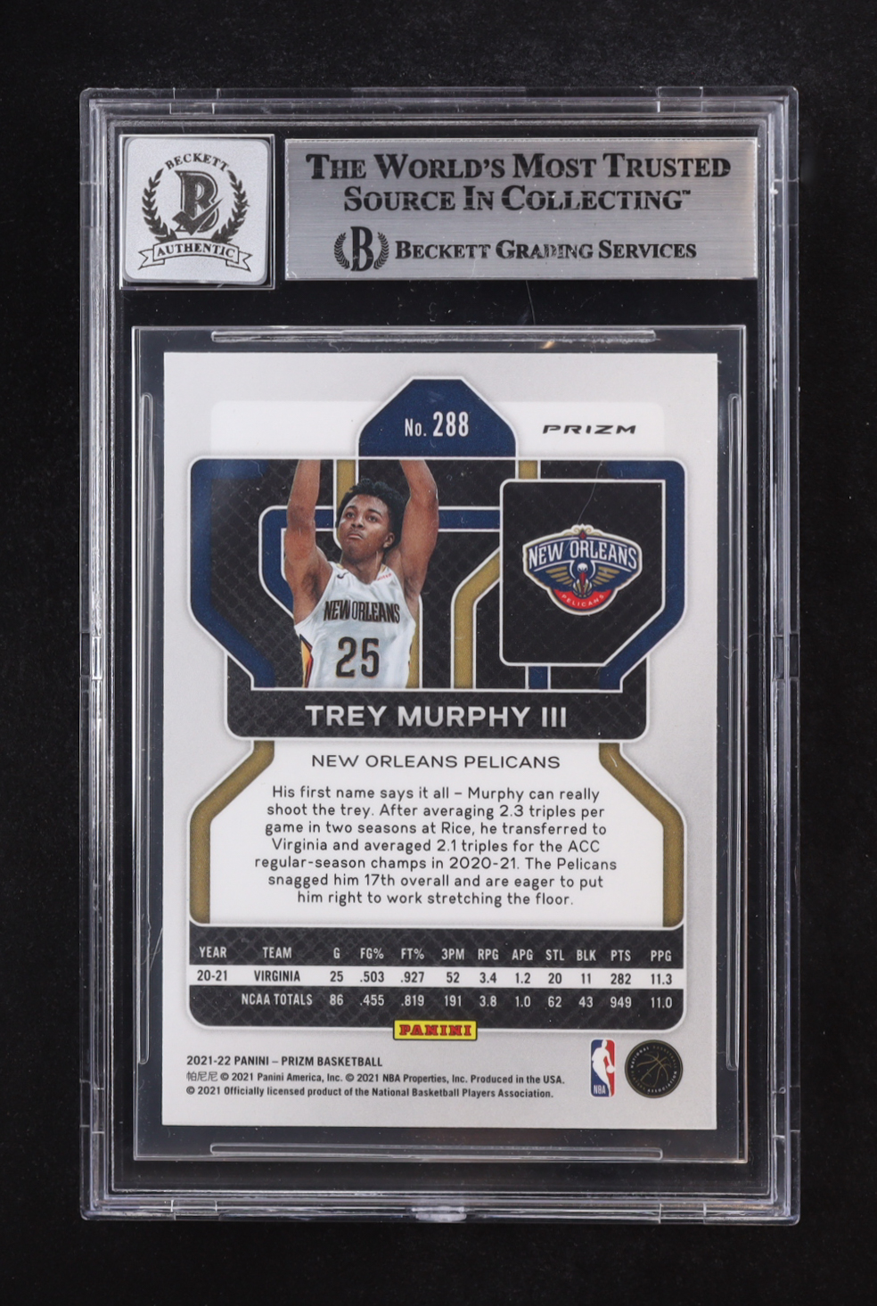 Trey Murphy III Signed 2021-22 Panini Prizm Prizms Silver #288 RC (BGS | Auto 10)