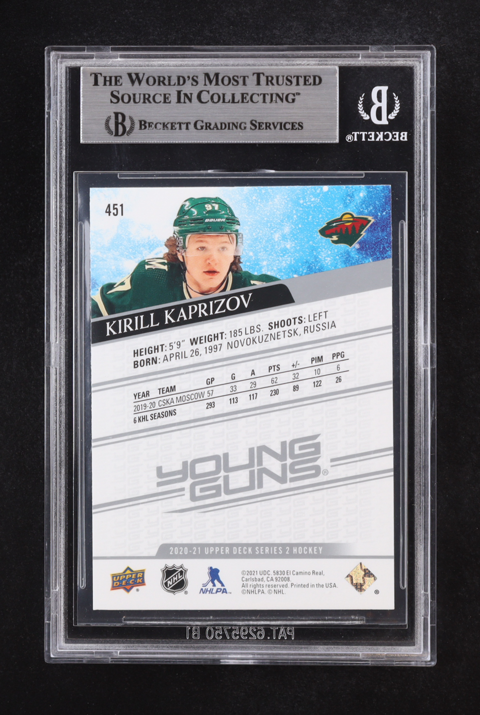 Kirill Kaprizov Signed 2020-21 Upper Deck YG #451 RC (BGS | Auto 10)