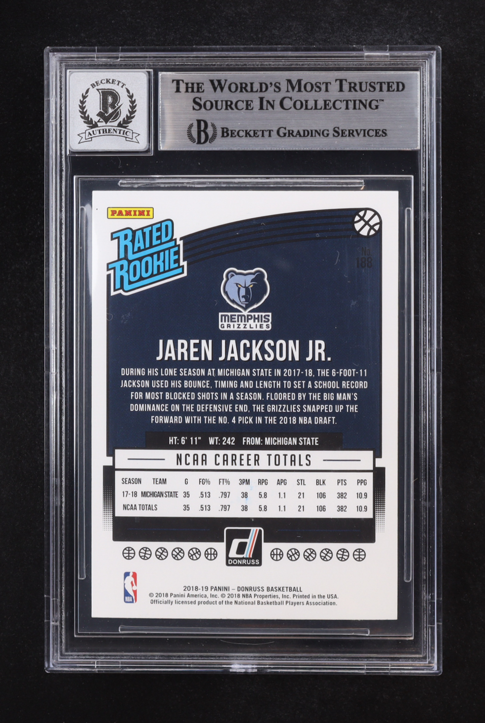 Jaren Jackson Jr. Signed 2018-19 Donruss RR #188 RC (BGS)