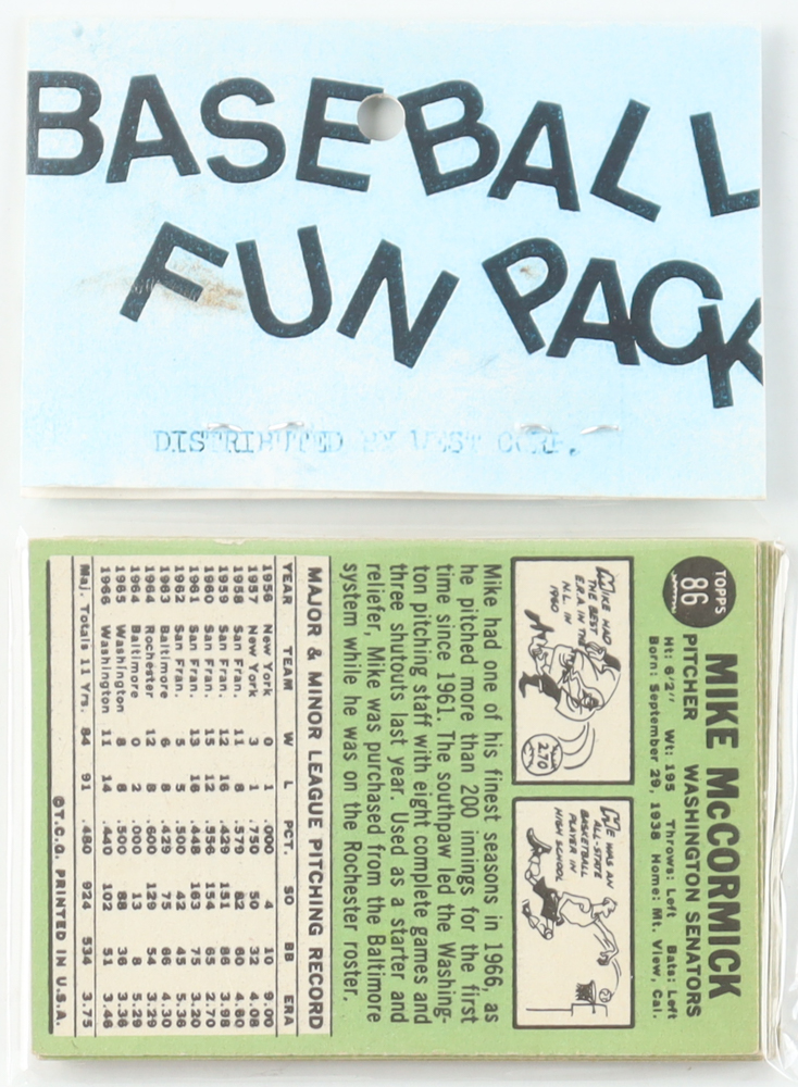 1967 Topps Baseball Card Fun Pack with (10) Cards