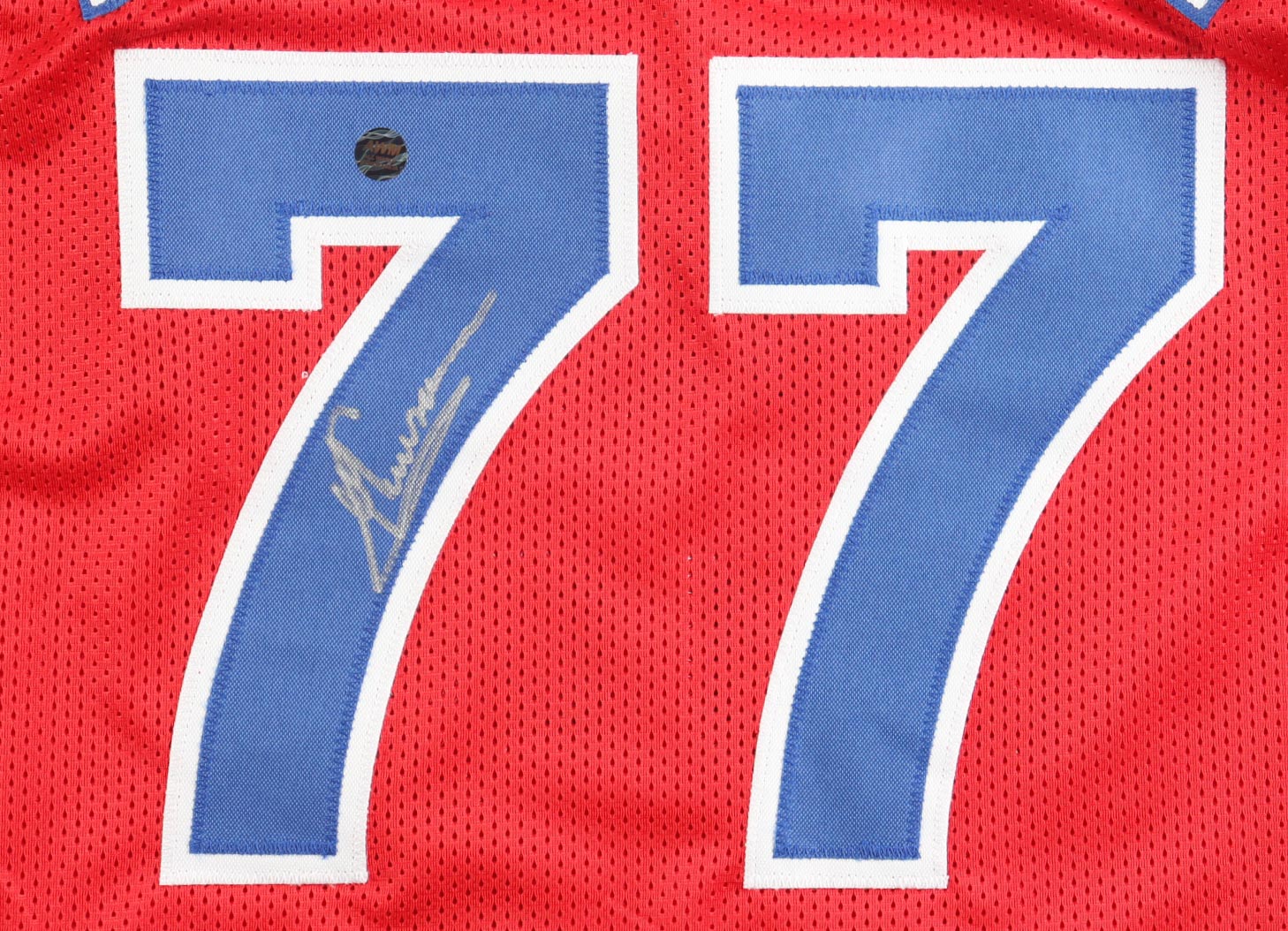 Custom jersey with everything sewn on, size XL. Hand-signed by Gheorghe Muresan.