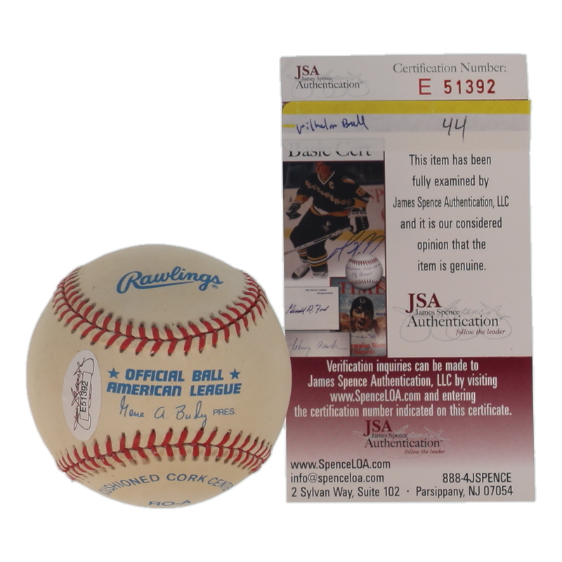 Rawlings Official American League Baseball. Hand-signed by Hoyt Wilhelm (D. 2013, St. Louis Cardinals, HOF).