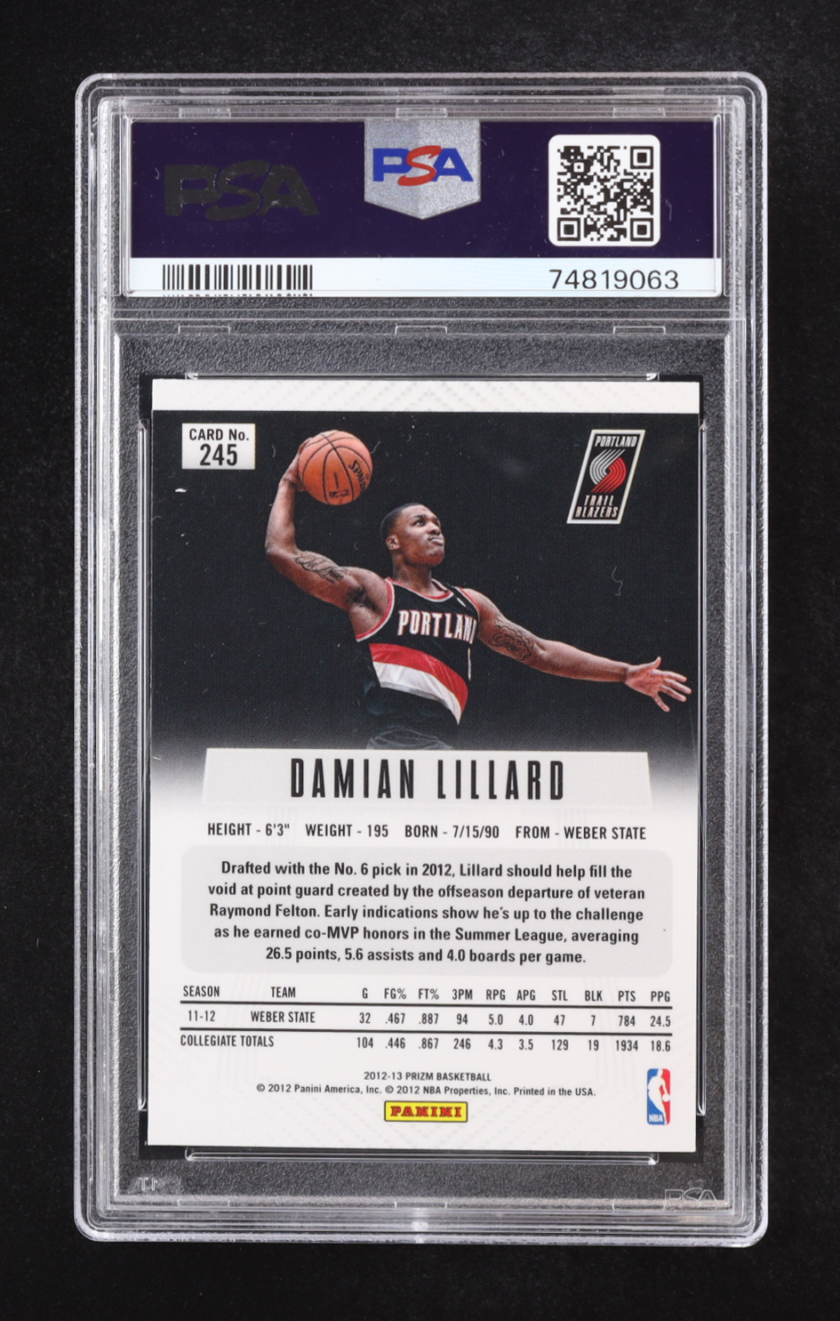 Damian Lillard Signed 2012 Panini Prizm #245 RC (PSA 9 | Auto 9)